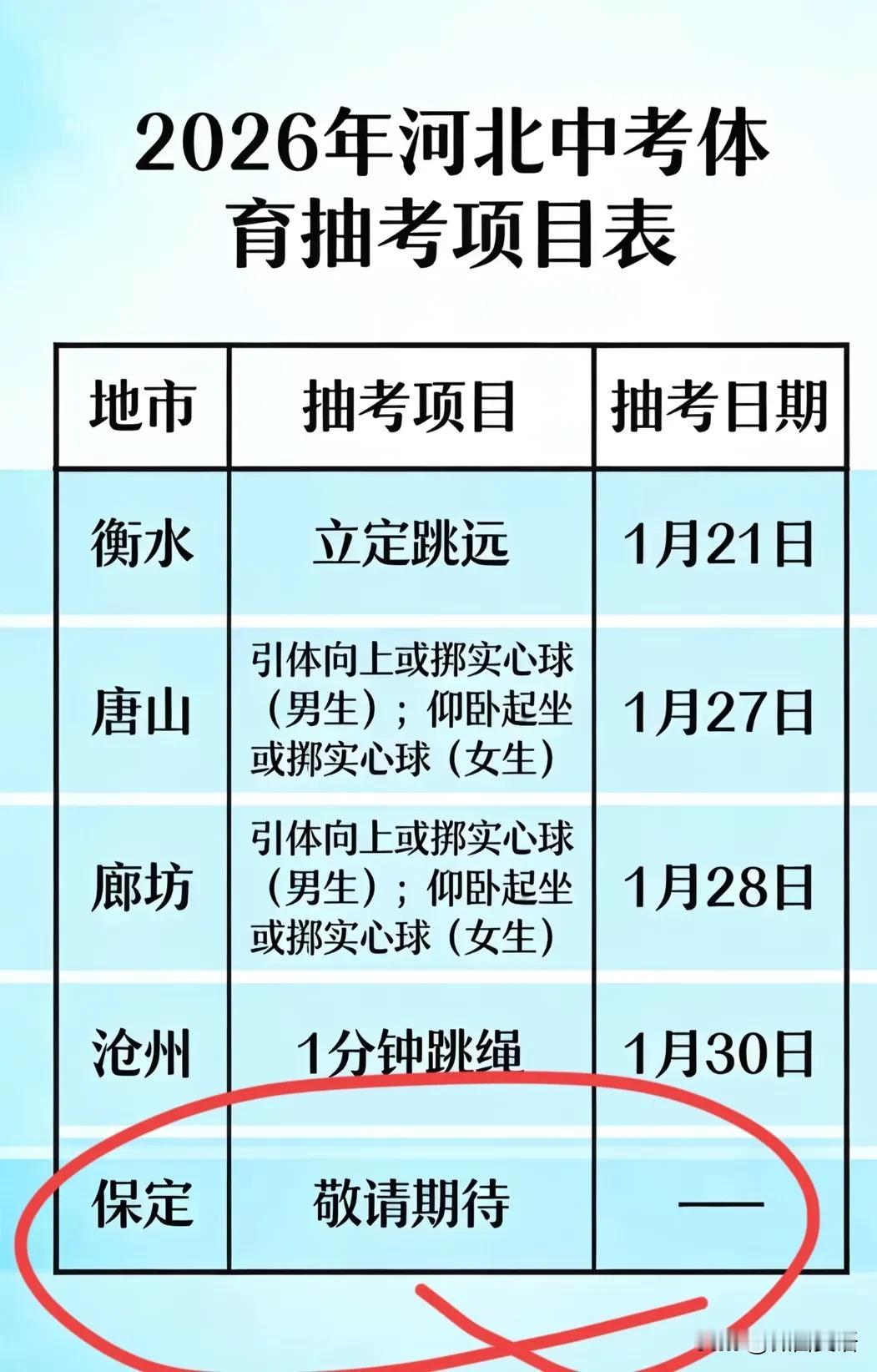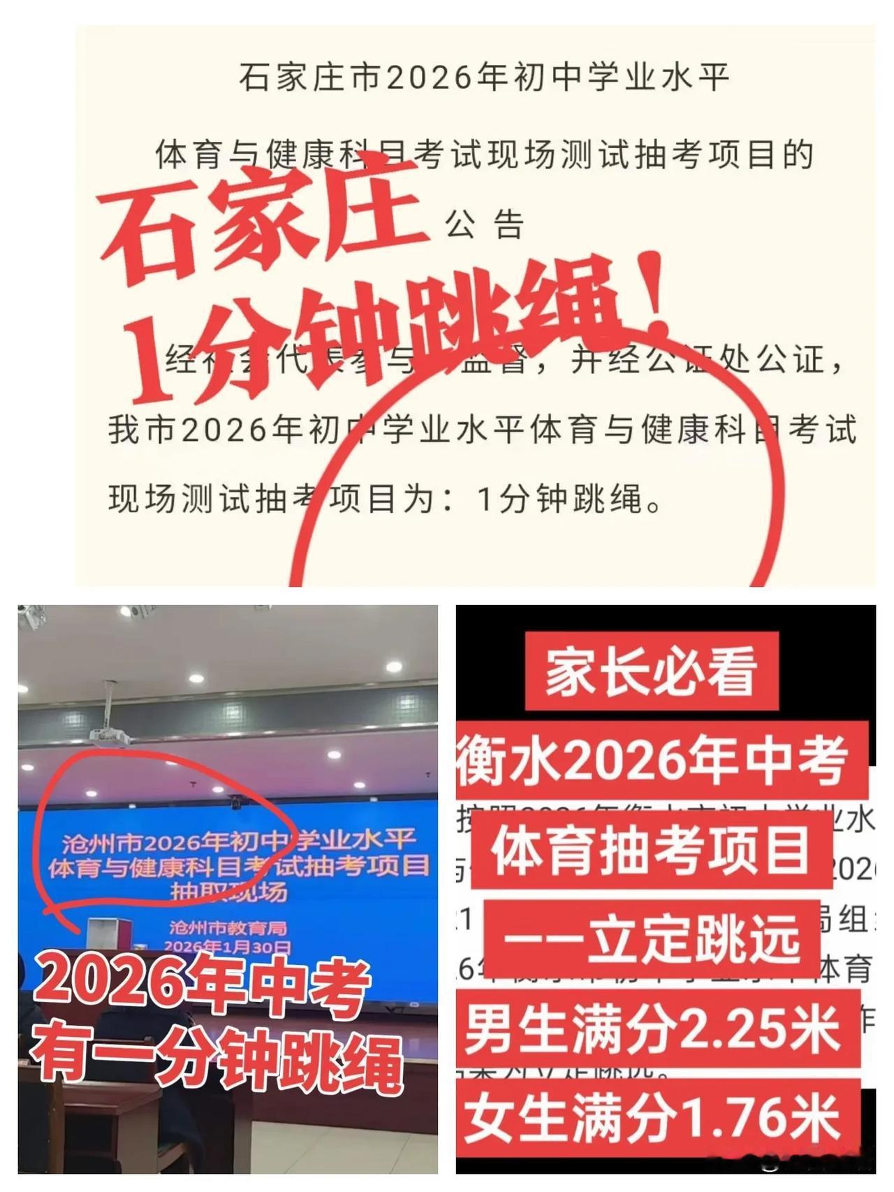 【不拆盲盒了!石家庄】2026年河北中考体育抽考项目表!不用猜盲盒了,石家庄的不是最后一个,体育抽测是1分钟跳绳! 寒假来了,石家庄初三的孩子们赶快起来,锻炼了吗? 1,衡水,立定跳远! 2,唐山,引体向上或掷实心球(男生);仰卧起坐或掷实心球(女生) 3,廊坊,引体向上或掷实心球(男生);仰卧起坐或掷实心球(女生)! 4,沧州,1分钟跳绳! 5,石家庄,1分钟跳绳! 6,邢台,50米跑! 7,保定中考,体育抽测项目是什么呢? 还有哪里的没出呢?张家口出了吗? 2月·每日幸运签 信息图片来源网络侵权联删