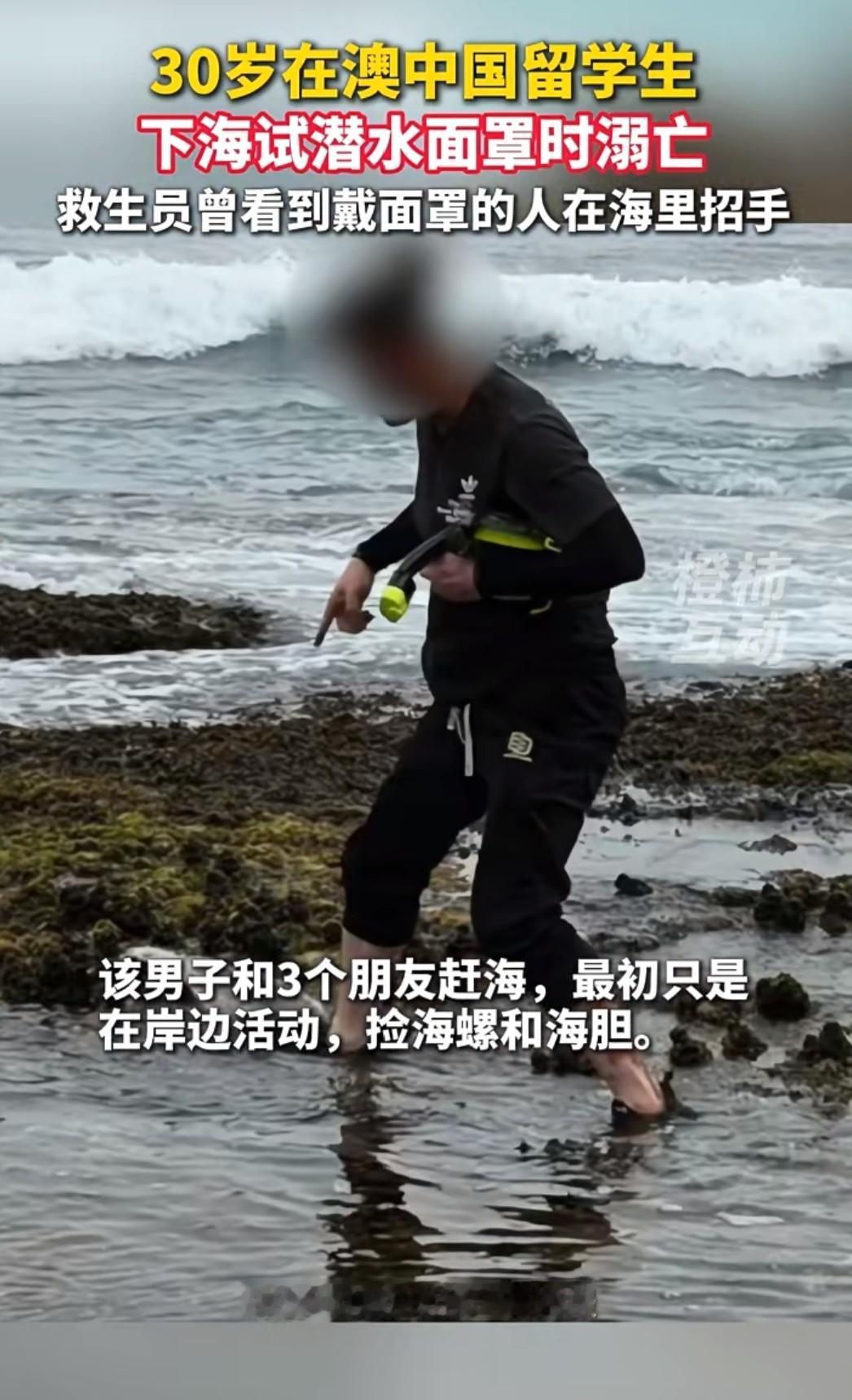 照片里的海浪已经很大了,居然还敢下水!遇难的留学生不生活在海边,看不懂风浪,很多当地人都说悉尼Maroubra Beach的浪叫“疯狗浪”。 之所以叫“疯狗浪”,就是前一秒水还在脚边,下一个浪过来就没到腰上,掉以轻心就容易出事。 近日溺亡的这位30岁留学生,是和几个同伴来赶海,只在岸边捡点海螺海胆出不了问题。 后来他独自下海,要测试潜水面罩,可很快人就沉下去了。 浮潜呼吸管只在平静的海面起作用,看看他身后的浪花,里面藏着恐怖的漩涡和离岸流啊!戴啥也没用。 可惜了,学业未成,年轻的生命反而丢在异乡。