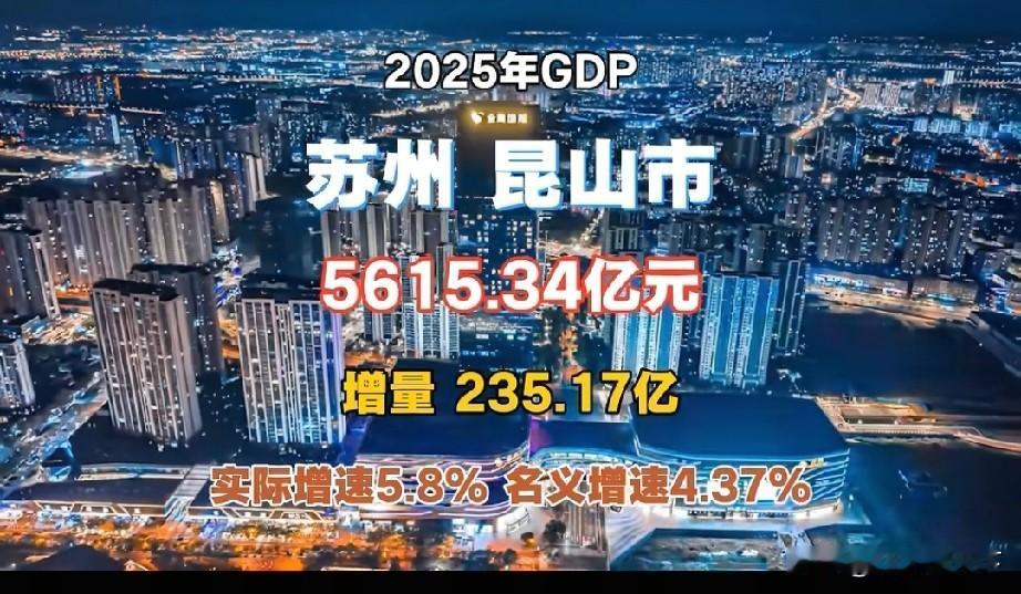江苏省县级市昆山市经济可以超越8个省会城市,在安徽排名第二名 昆山市,是江苏省县级市,地级市苏州市代管,常住人口约216万人,全市总面积约931平方公里,2025年昆山市成绩单是5615.34亿元,增量235.17亿元,名义增速4.37%。 假如把昆山的经济数据放在省会首府城市里看,能排名第20名,低于贵州贵阳,高于太原,乌鲁木齐,呼和浩特,兰州,银川。海口,西宁,拉萨8个省会首府城市。 昆山的经济数据如果在安徽,仅次于合肥,高于芜湖,排名安徽第二名。 昆山的电子信息、装备制造两大主导产业产值整体突破万亿元,带动规上工业总产值连跨四个千亿级台阶、年均增长7.7%,综合实力稳居全国县级市首位。苏州昆山经济 昆山经济腾飞 昆山gdp 昆山景象 昆山2035