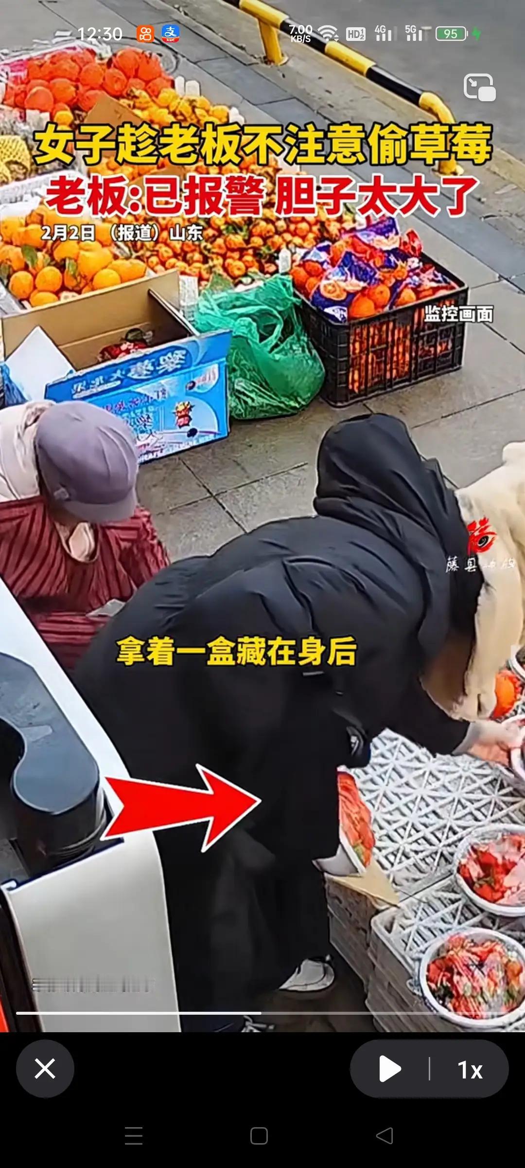 偷盗?习惯成自然! 2月2日,山东。一名女子为了那一盒鲜嫩多汁的草莓,竟然“谋划”得如此周密。她先悄悄找到监控视频的存放位置,像个老练的“侦探”,确认无误后,便开始了她的“行动”。只见她背着老板娘,身穿严密的装备,似乎怕被人认出,又像是在演一场“潜入行动”。她将一盒草莓装进包里,动作熟练而又冷静,仿佛这只是她日常生活中的一件“小事”。 这背后,折射出什么?是一个社会的缩影,还是个体心灵的迷失?或许,她的行为并非孤立,而是某种“习惯”的延续。也许,是生活的压力让人变得麻木,或是对规则的无视逐渐成为一种“潜规则”。她的“严密装备”不仅仅是为了遮掩偷窃,更像是在告诉我们:在这个快节奏、竞争激烈的社会里,有多少人正用不同的方式,试图在生活的夹缝中找到一丝喘息。 但我们不得不问:为什么会有人走到这一步?难道是制度的缺陷,还是人性的扭曲?更令人深思的是,这样的“习惯成自然”会不会成为社会的隐形危机?当偷窃变得如此“专业化”,我们还能相信这个社会的公平与正义吗?还是说,只有当每个人都反思自己的行为,才能真正改变这个“习惯成自然”的现象? 这不仅仅是一起草莓盗窃事件,更是一次关于人性、关于社会价值观的深刻拷问。或许,我们都应该停下来,问问自己:在这个充满诱惑的世界里,我们还能坚守多少底线?当“习惯成自然”成为一种常态,社会的“底线”还能坚守多久? 读到这里,你是不是也在心里暗暗叹息?但更重要的,是我们每个人都能从中看到自己的影子。毕竟,只有当我们每个人都愿意为正义站出来,为规则守护时,这个社会才能少一些“习惯成自然”的灰色地带。你怎么看?欢迎留言,一起讨论这个值得深思的话题。盗窃 文明行为