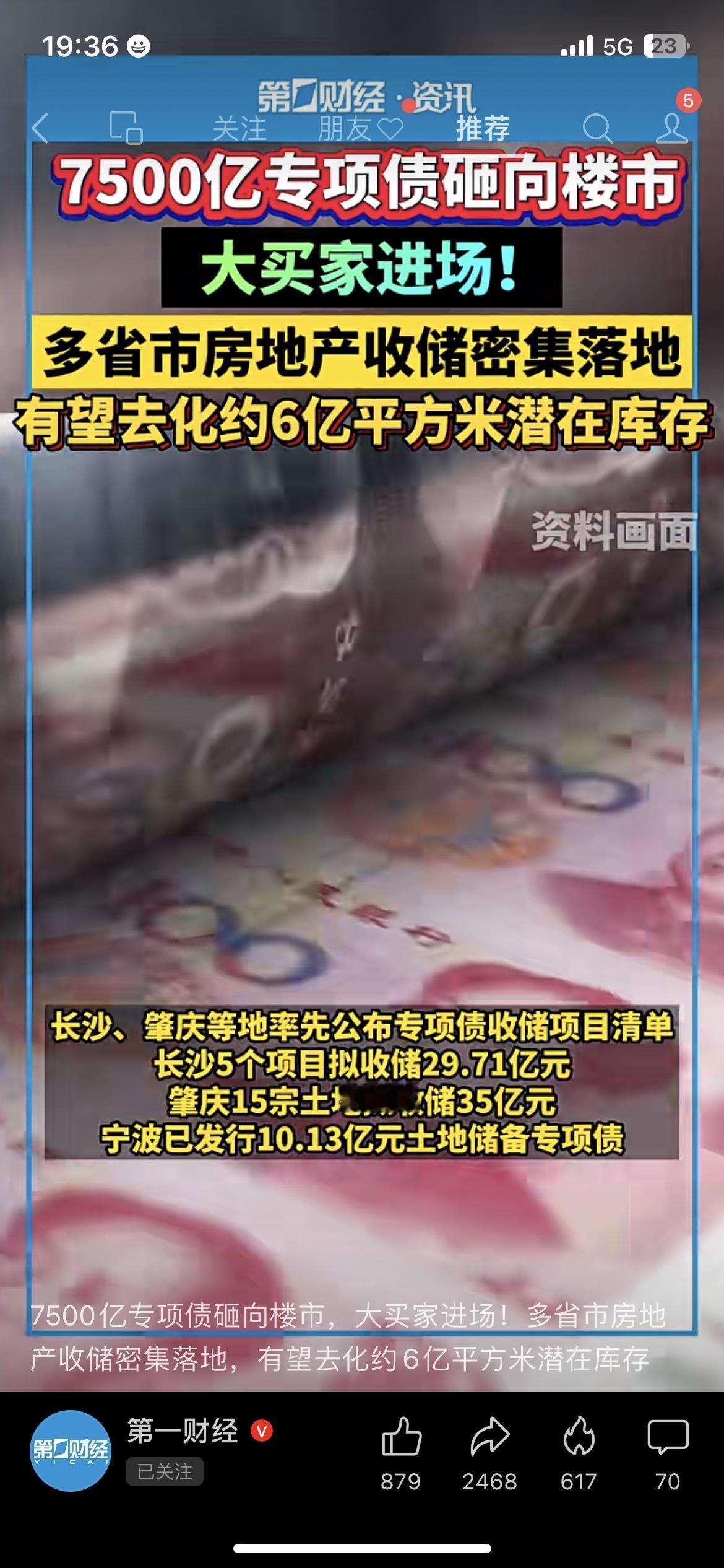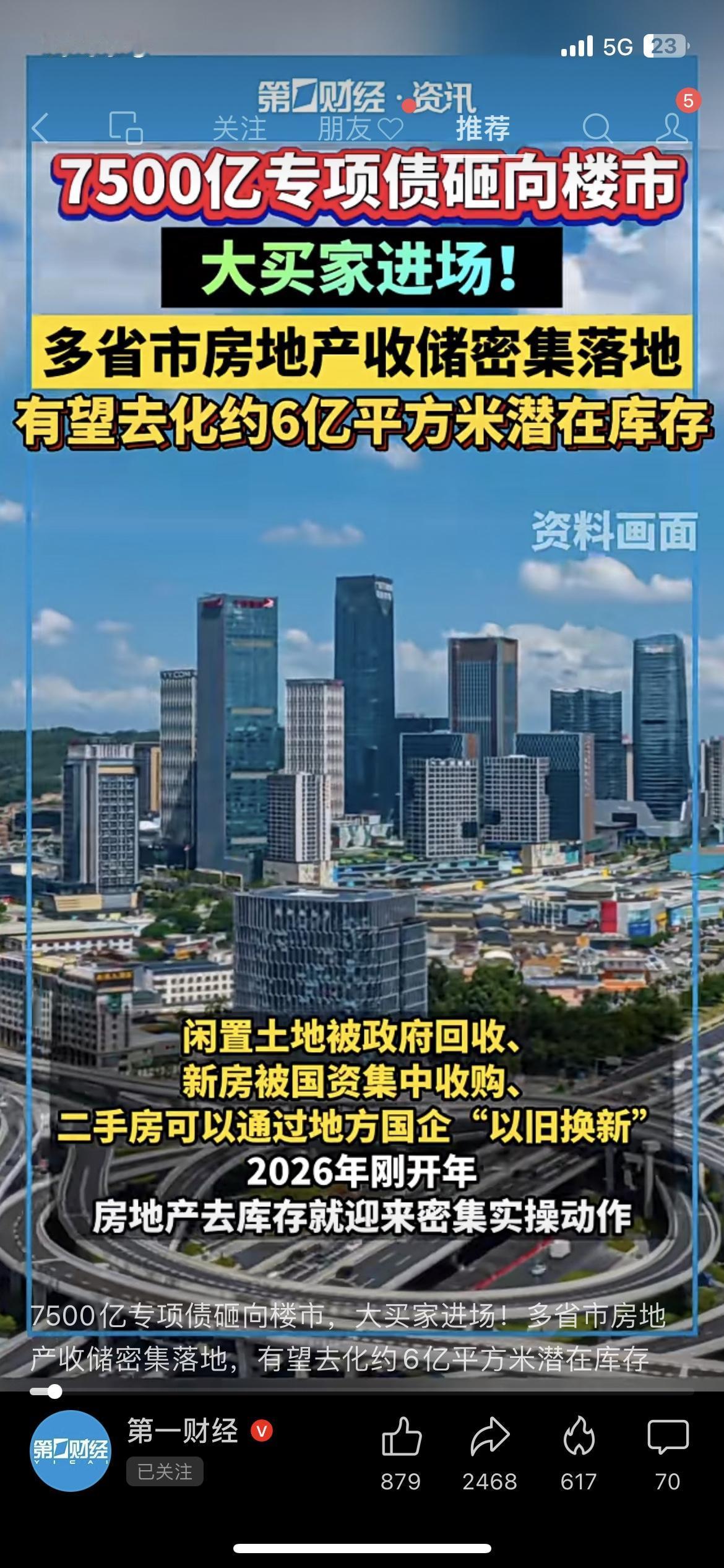 多省市房地产收储密集落地,有望去化约6亿平方米潜在库存,湖南、河南等多地启动存量房收购,上海、杭州推出“以旧换新”。 救市不是抄底信号,稳才是普通人的核心逻辑 你会趁机买房,还是继续观望? 楼市政策 专项债 财经热点 民生经济 市场有风险,投资需谨慎