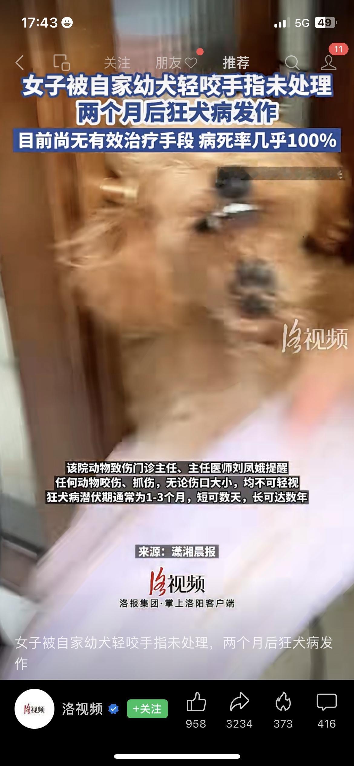 😱太吓人!被自家小狗咬了没处理,2个月后发病! 湖南一女子被自家幼犬轻咬手指,觉得伤口小没在意,结果2个月后狂犬病发作,现在已经没救了。医生说哪怕是小伤口,只要破皮就可能感染病毒,潜伏期最长能到好几年。 家养犬不是安全牌,被动物抓咬后第一时间去打疫苗。 你被动物抓咬后会第一时间去处理吗? 民生热点 狂犬病 安全警示狗咬伤