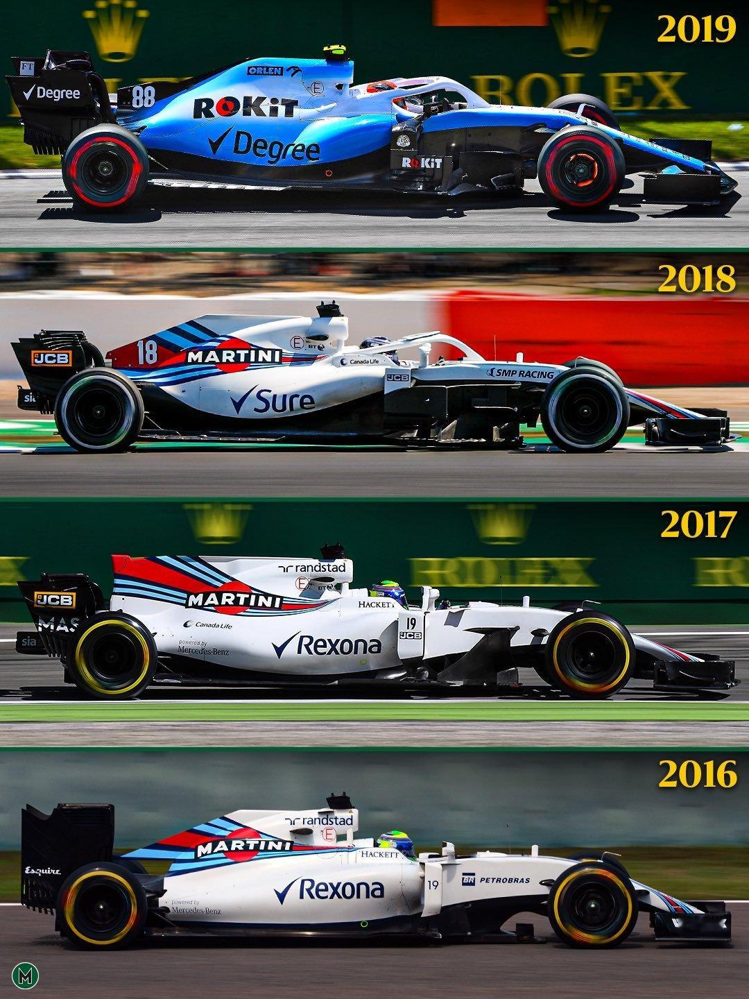 F1 威廉姆斯车队涂装从2016到2026这十年以来的演变你觉得哪一年的最好看?