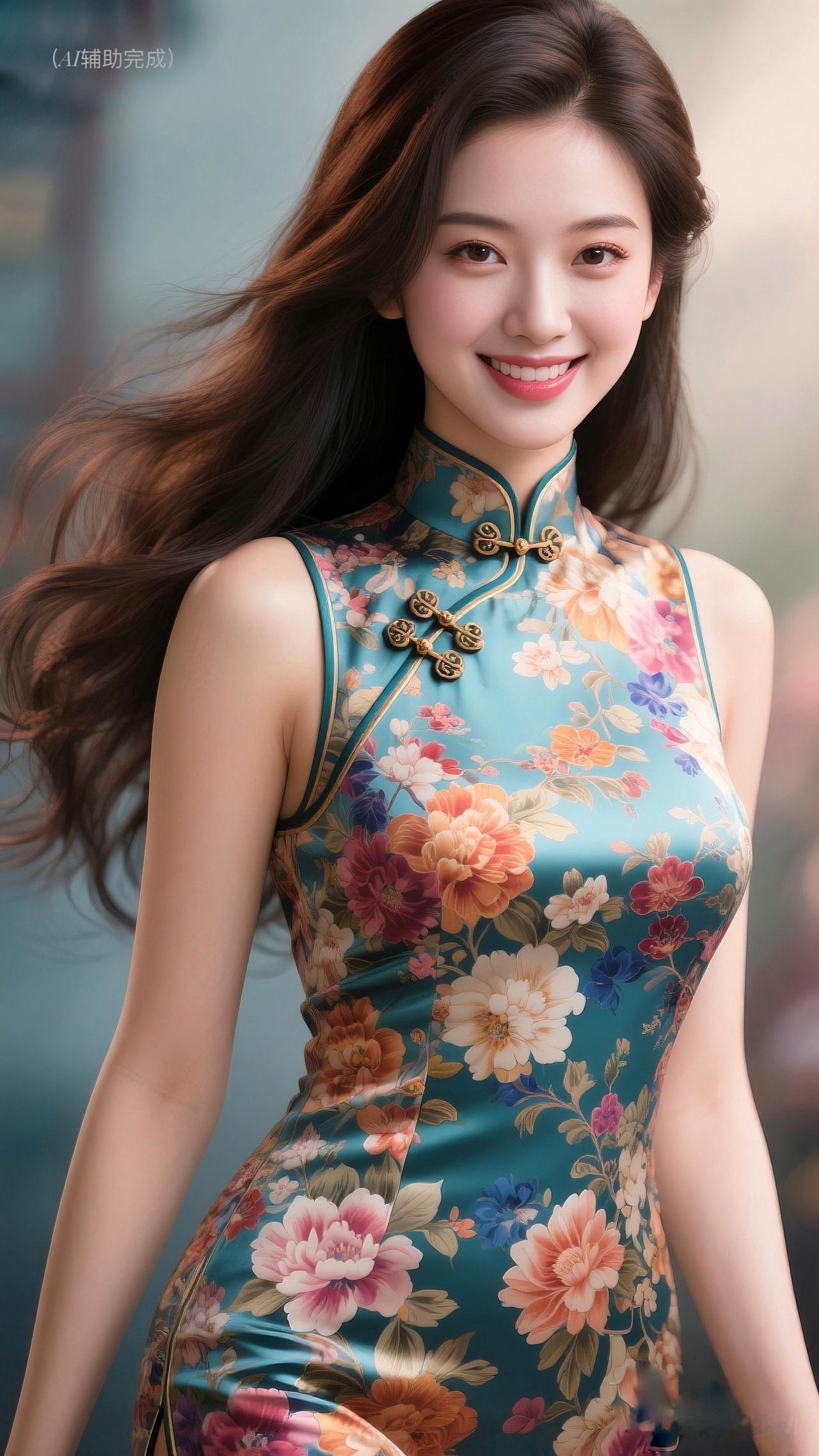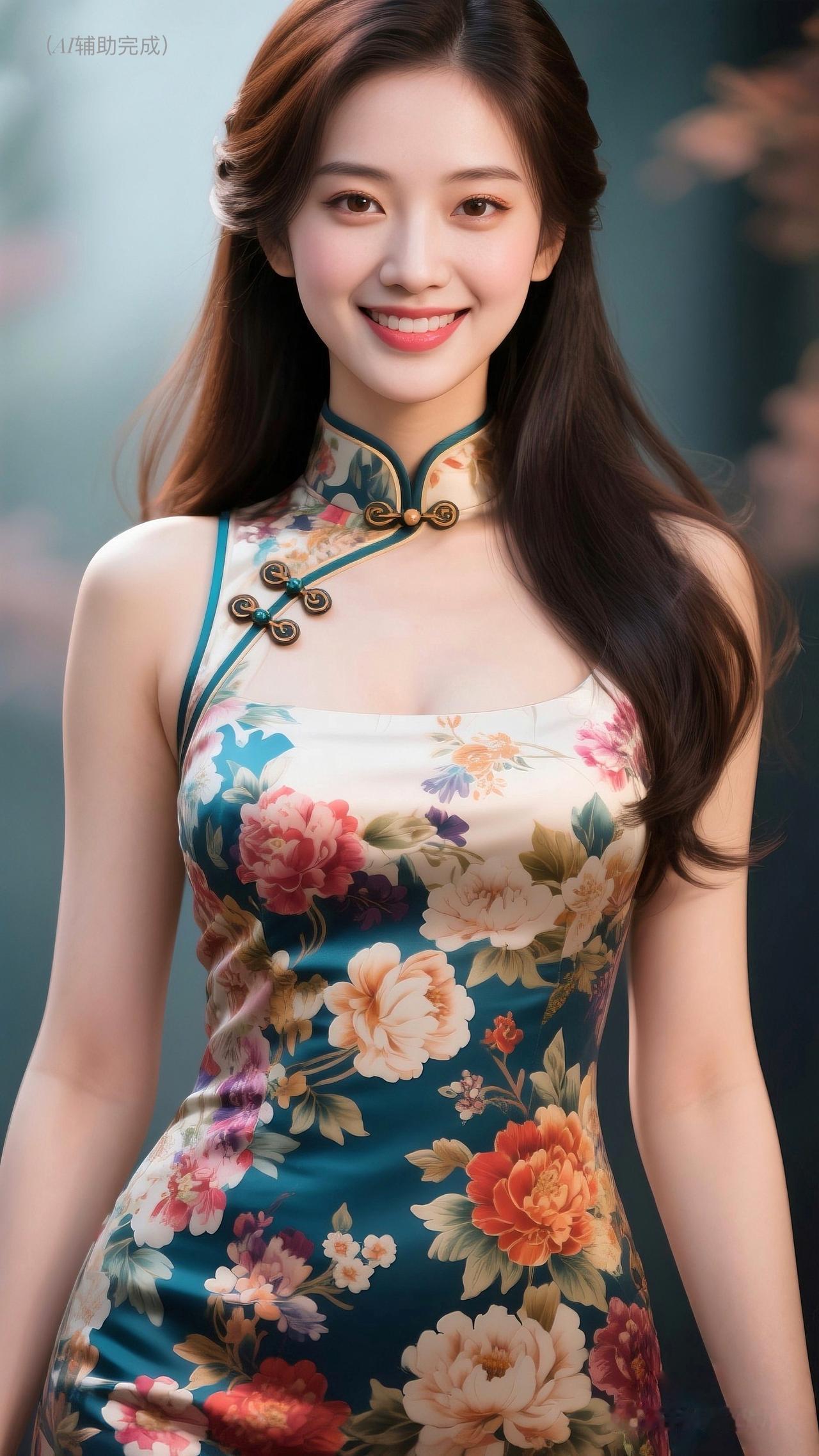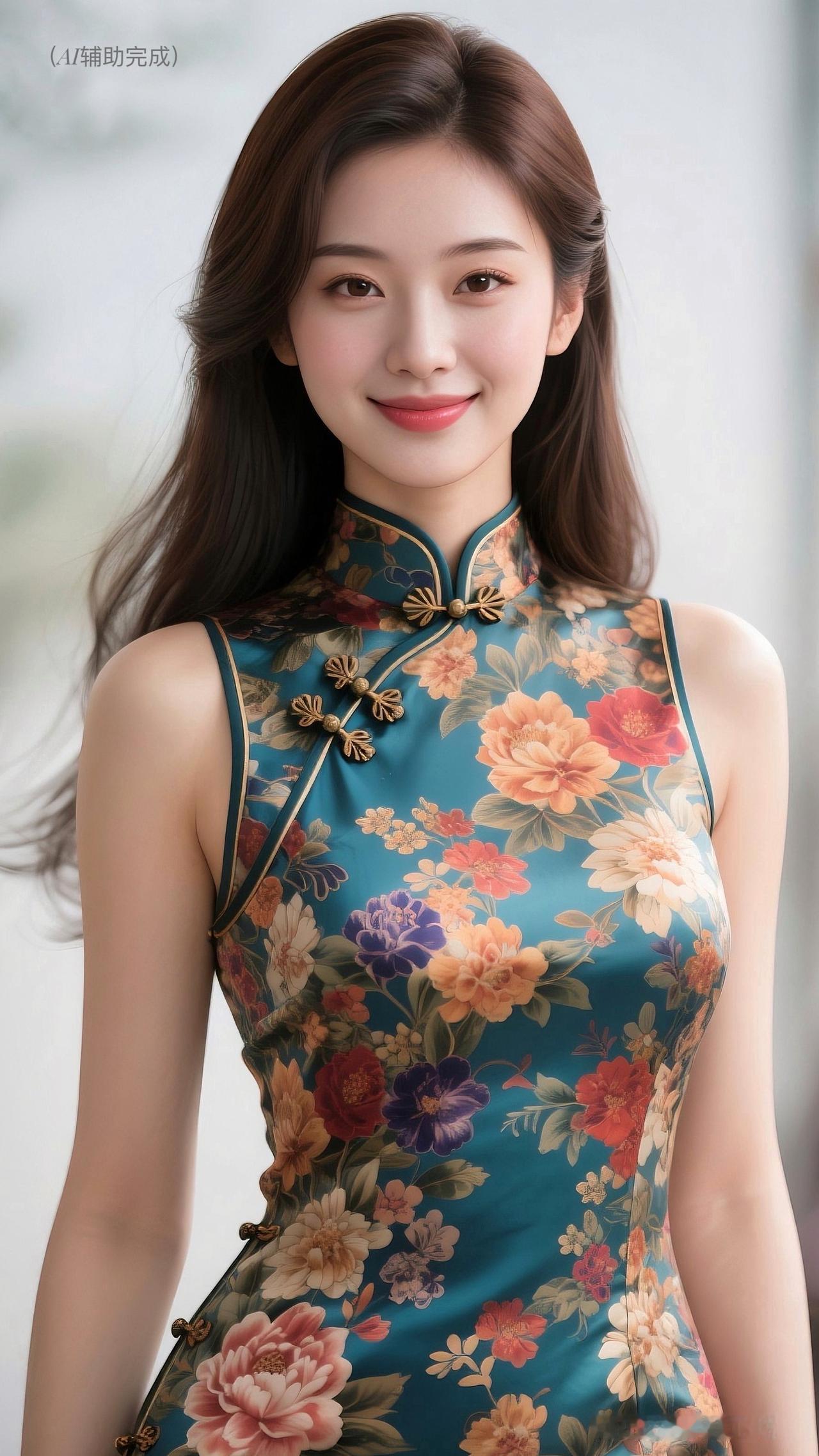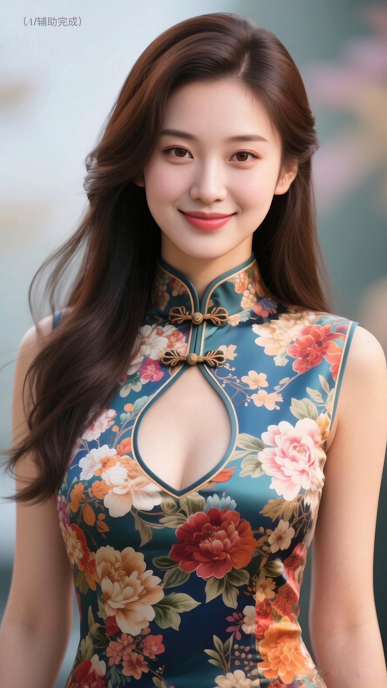 九帧同绘东方古典仙。蓝底旗袍绽繁花,立领盘扣添雅韵,长发如瀑垂肩漾柔光。眉眼含笑眸藏春,红唇点绛醉人心。虚化暖调衬温婉,典雅诗意漫帧间,一眼沦陷!