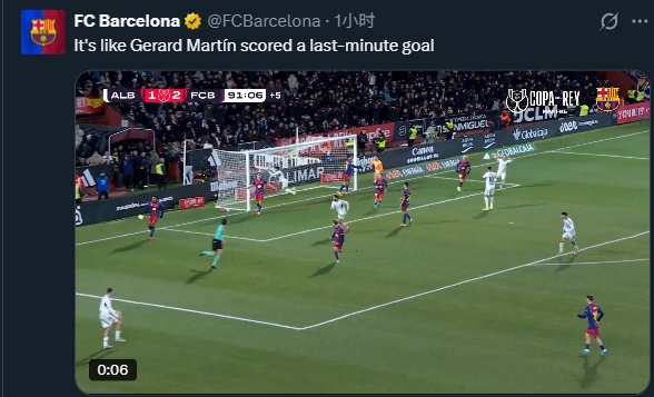 赛后,巴萨官方社媒账号也将此球描述为:就像是马丁打进了绝杀进球一样/今日最佳扑救!