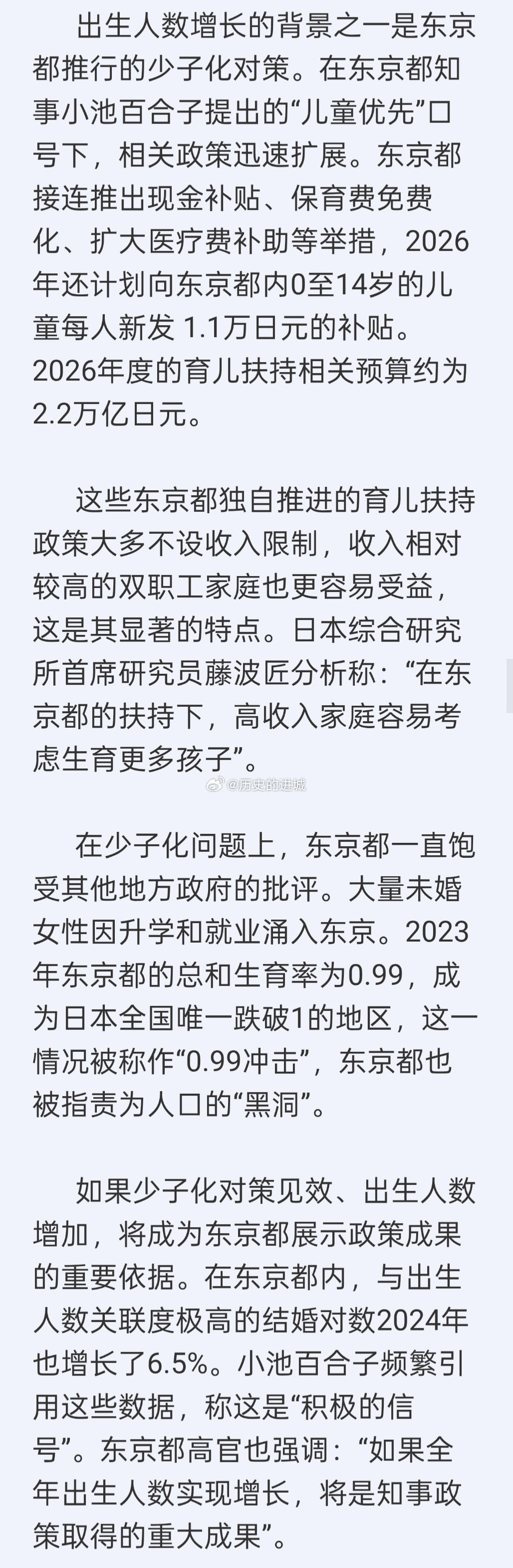 一直被批评为日本人口“黑洞”的东京都在连续十年砸钱之后,据说已经有希望看到效果了,2025年全年的人口数据将出现10年来首次净正增长。完善的育儿扶持政策也获得了东京都都民的广泛支持。东京都2025年12月发布的都民问卷调查结果显示,在过去一年关注的都政事件的自由描述中,“儿童、育儿、保育”相关内容被提及的次数最多。