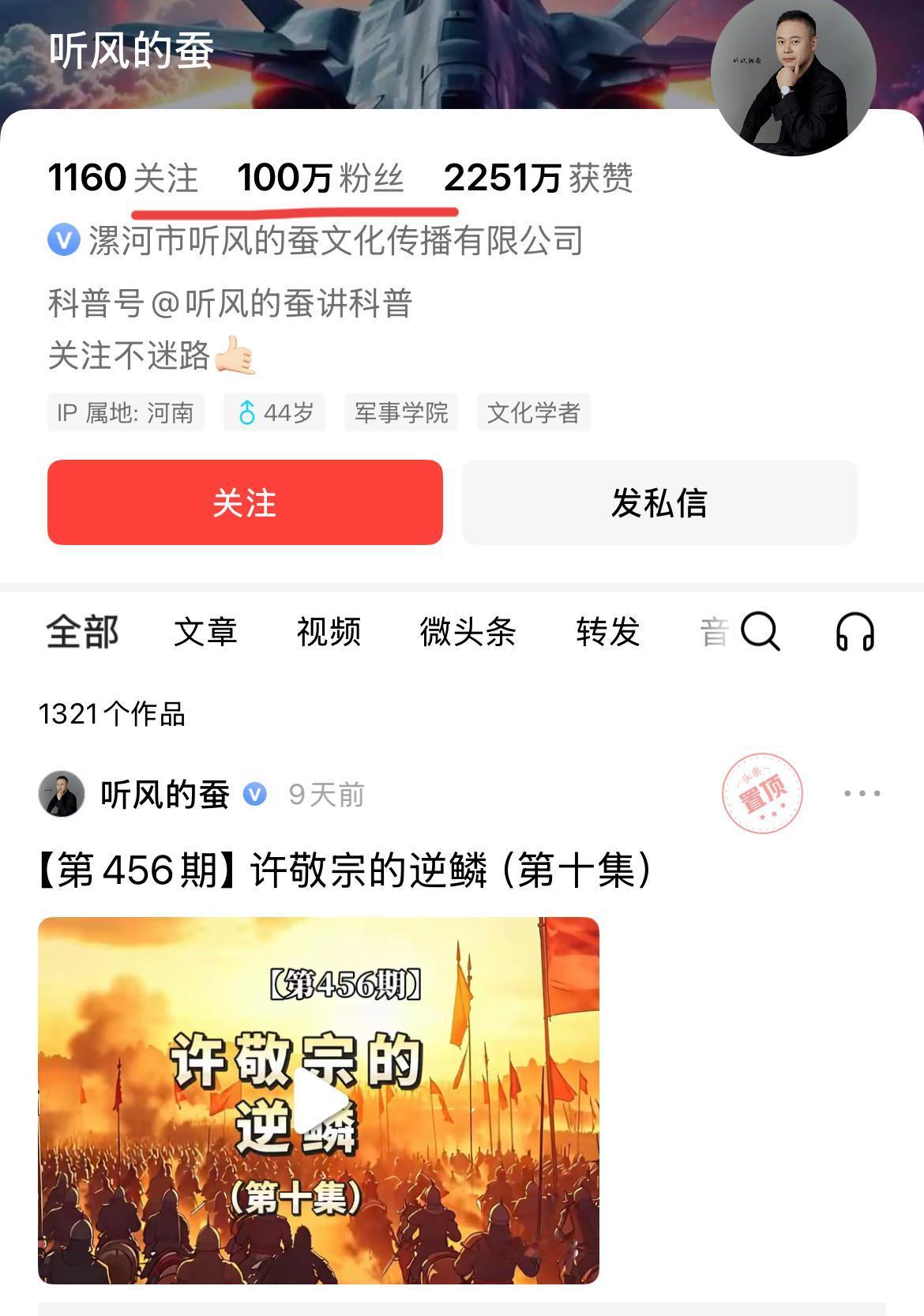 太有信心也未必是好事啊!我有时候,物极必反,盛极必衰,这个道理,这些超级博主会不懂吗?不要忘记了初心,不要忘记了来时的路,不忘初心,方得始终啊! 超级大博主,老蚕,粉丝由2000万,跌到了100万,这也太超乎想象了吧~ 他到底说了什么不该说的,透露了这么不该透露敏感信息呢? 去年就有粉丝提醒他,一大堆人想要封他,他当时还是非常霸气的回应,我是不可能被封的,再多人叫也没用,多么自信啊,可惜了!要我说,著名的反美斗士,司马老师都能被封,还有谁不能被封呢,对此,你有何看法?
