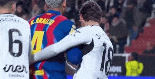低级失误! 巴萨门将抱着皮球走到场外祝贺阿劳霍, 被判角球