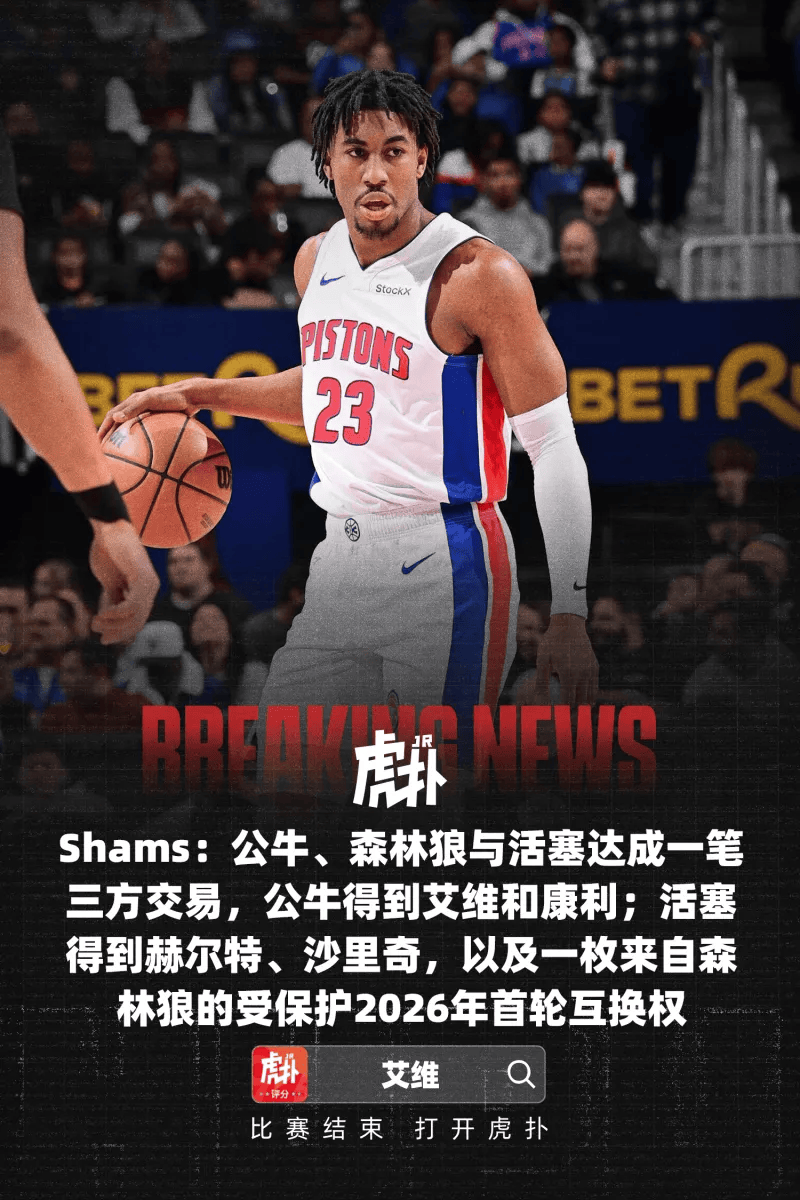 我不确定活塞是否通过增加1300万美元薪资实现了价值最大化,但这笔交易后,他们成为了一支更好的季后赛球队。同时,他们也升级了2026年的选秀权,潜在提升幅度不小。目前互换权的保护细节尚未公布,但如果赛季今日结束,活塞的选秀顺位将从第29位升至第23位。考虑到ESPN的篮球实力指数将森林狼剩余赛程评为联盟第四艰难,活塞的顺位还有进一步提升的空间。