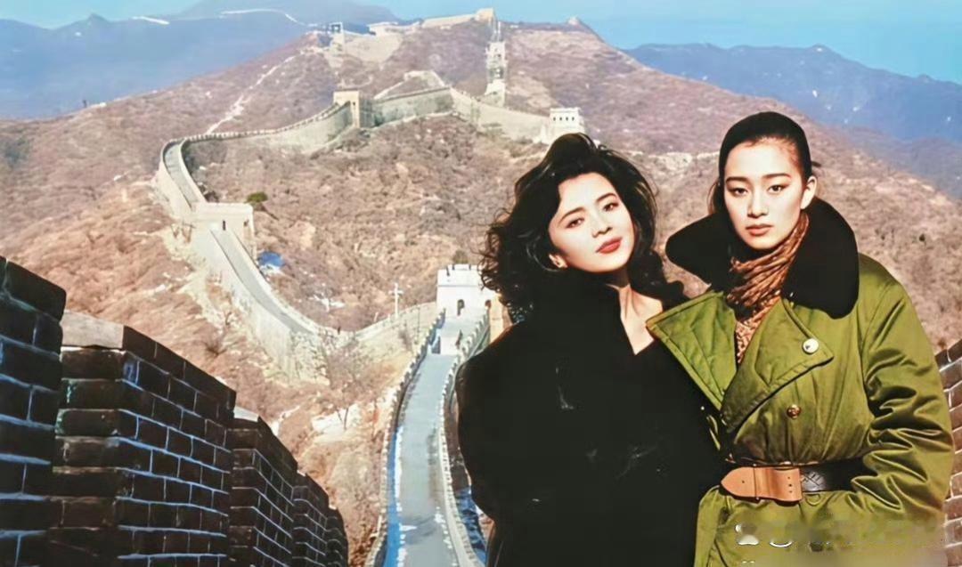 年陈玉莲和巩俐在长城上的合影,美人在骨,放在现在看依然很美!