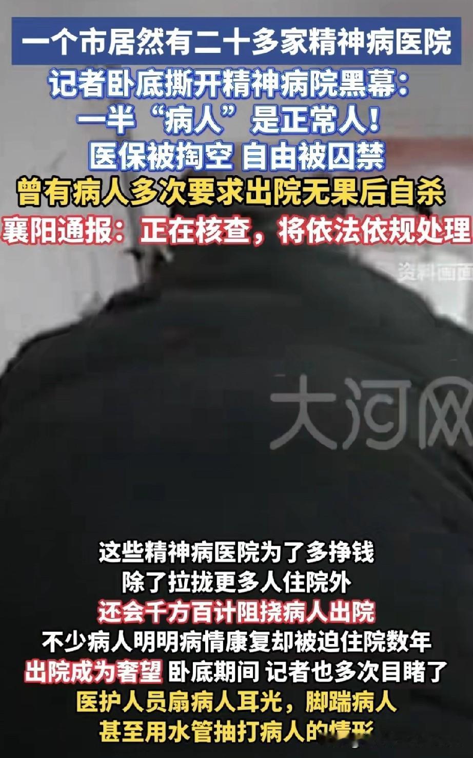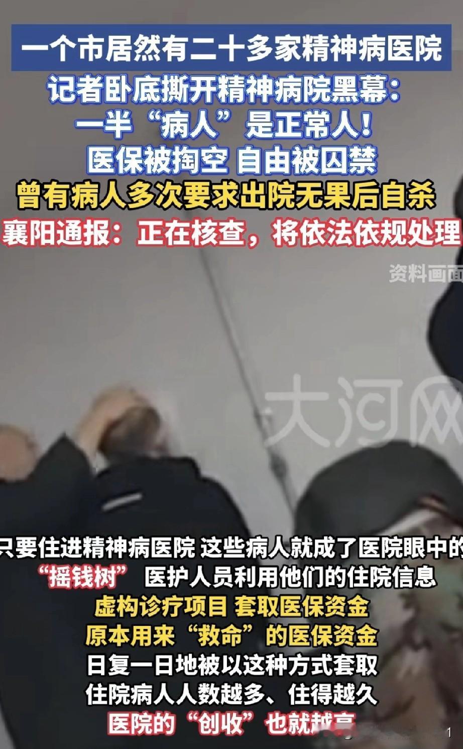 襄阳又火了,原来短剧里演的都是真的啊!一个正常人被强行扣上精神病的帽子,从此失去自由,这种痛苦怕是比坐牢还难熬。襄阳又出事儿了,上次买卖新生婴儿的好像也是这个地方。把正常人关起来当精神病人对待,这可是犯法的行为。 设想一下,将正常人当作病人,他要承受多大的痛苦和经济压力啊,甚至还可能导致正常人自杀,这岂不成了合法杀人?市面上消失的流浪汉、拾荒者,会不会都被弄进这里面了?利用这些人头去套取财政补贴,太可怕了!究竟是什么原因能让正常人被送进精神病院,这必须彻查。为了赚钱而毫无人性,实在可悲。 如果情况属实,卫生局长涉嫌玩忽职守罪,分管市长涉嫌渎职,都应依法追责。那么问题来了,一个正常人要是被关进精神病院,该怎么证明自己正常呢?