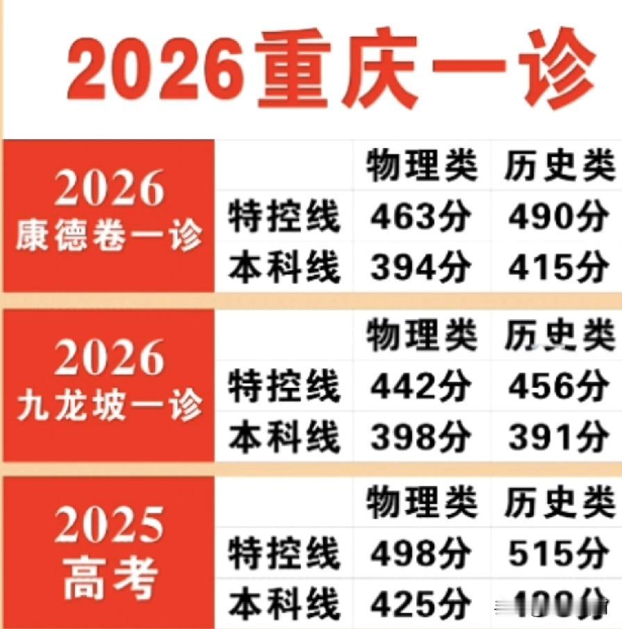 2026年重庆高三一诊考试分为康德卷和教科院卷,目前划线已出,其中康德卷全市累计有效参考超过18.6万人次,其中,历史类累计有效参考超过6.18万人次,物理类累计有效参考超过12.46万人次,比2025年高考人数少3万,物理类特殊类分数线463分,56130名,历史类特殊分数线490分,11829名。 高三一诊是对第一轮复习成果的阶段性检验,也是查漏补缺、优化后续复习策略的重要契机,无论结果好坏,都应该保持一颗平常心,目标坚定,继续砥砺前行!