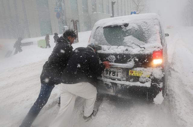 当地时间2026年1月25日,日本北海道札幌市,受日本海低气压南下影响,北海道日本海一侧降雪加剧。受大雪影响,出租车和卡车被困。