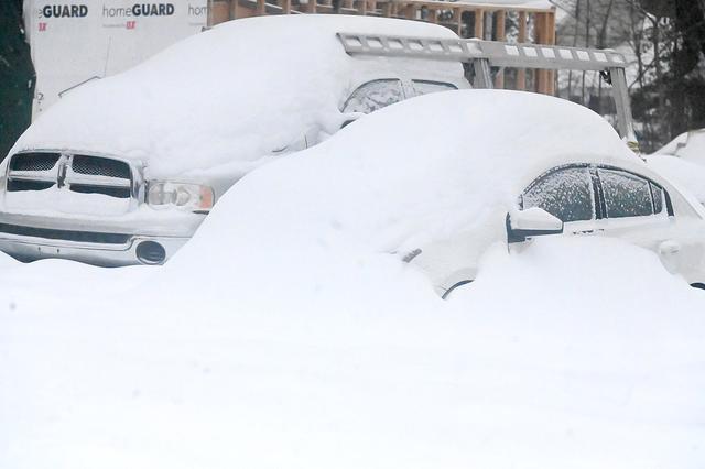 当地时间2026年1月26日,美国考文垂,南街上被积雪掩埋的车辆。考文垂是该州降雪量较高的地区之一。
