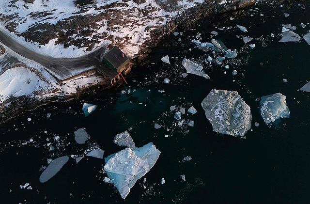 当地时间2026年1月29日,格陵兰努克,无人机航拍冰层覆盖海岸线的景象。