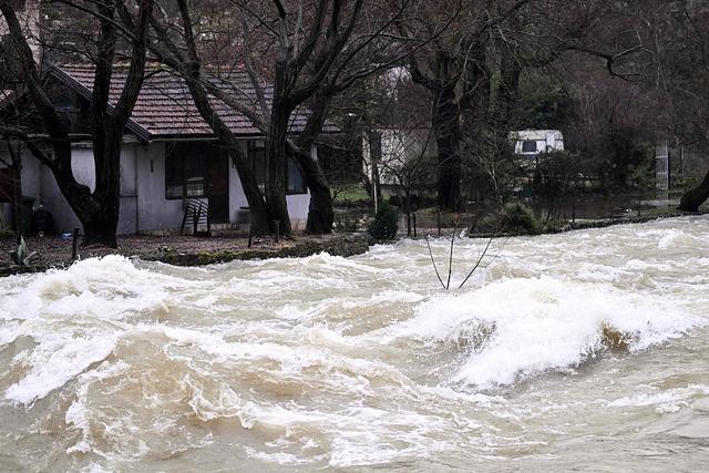 当地时间2026年1月6日,波黑布拉加伊,布纳河源头附近,一栋房屋在暴雨后受到洪水威胁。波黑当局表示,降雪和强降雨导致巴尔干部分地区停电和洪水,一名妇女在波黑的一起与天气有关的事故中丧生。