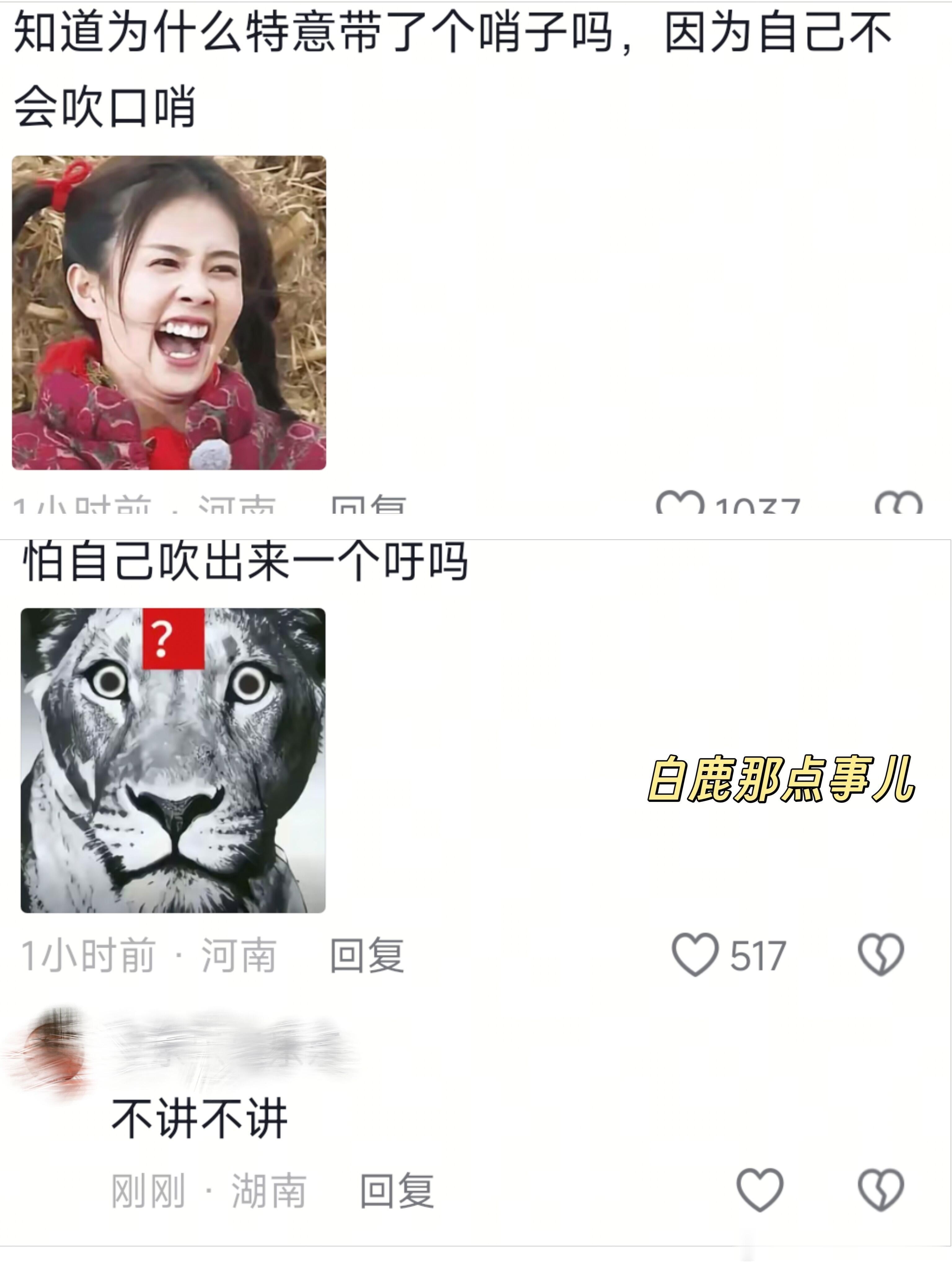 白鹿在唐宫评论区疑似失去所有力气笑点是评论区各位和白鹿给的,白鹿看见各位都在说她的吁~不会吹口哨发出“?”一枚~