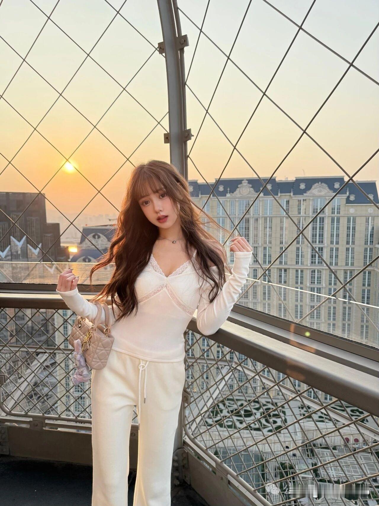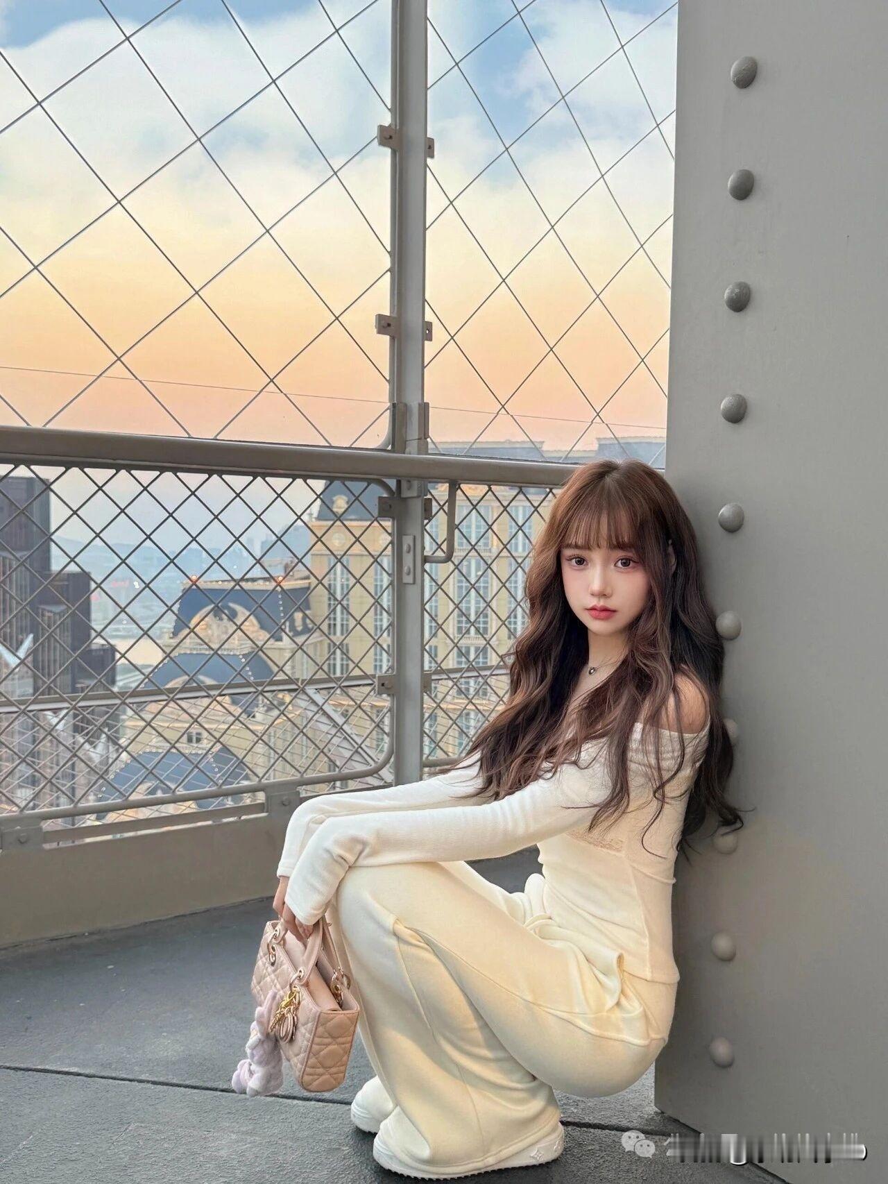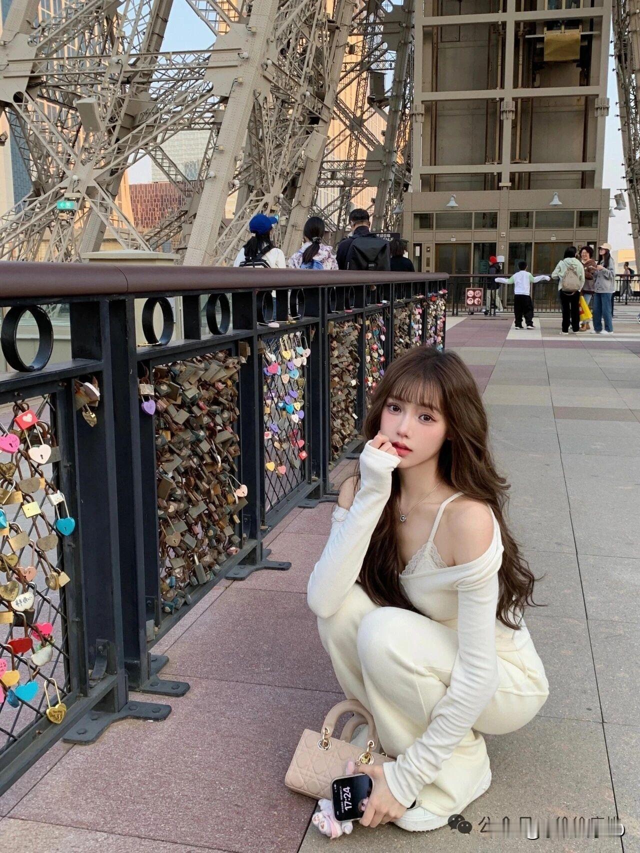 黄昏时分,优雅漫步在巴黎铁桥上,享受浪漫时光。