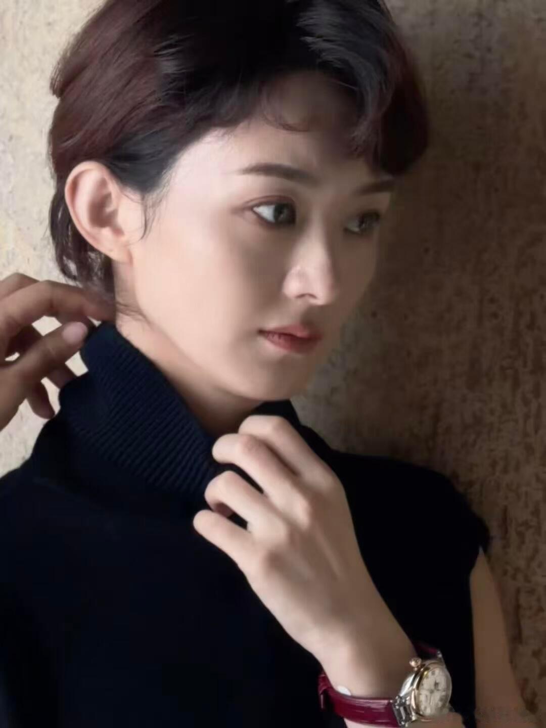短发配黑衫,清冷又高级,赵丽颖这颜值鲨疯了。