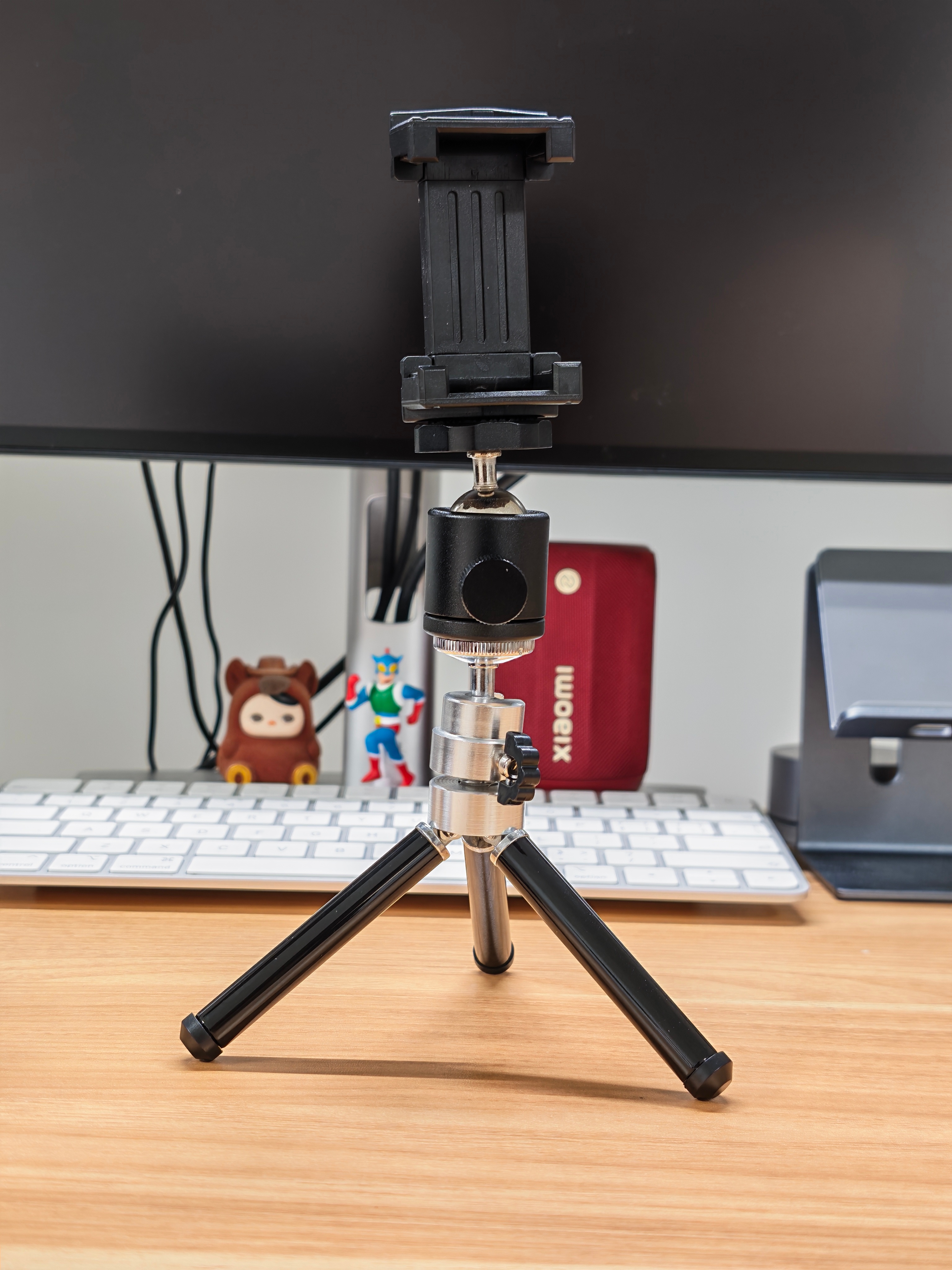 东西很丰富,桌面三脚架、磁吸补光灯,还有无线麦克风,真不错。