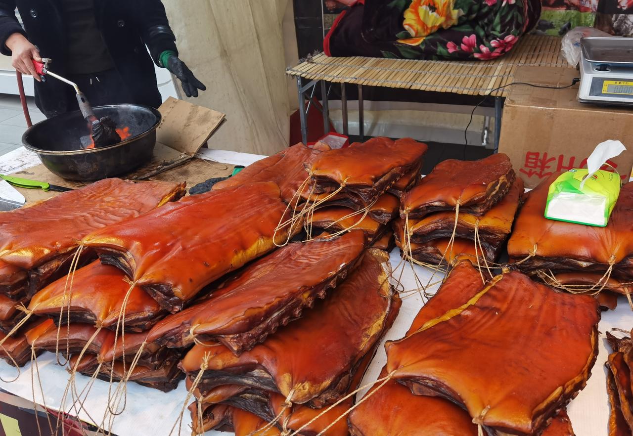 昨日在成都逛街,见一处卖北川生态猪肉摊位,也就是烟熏过的老腊肉,价格29元一斤。 说实话,在成都很难买到烟熏过的老腊肉,我见这腊肉还不错,买了一块腊肉3斤多(103元)晚上品尝一下味道。 说起腊肉,那还是在湖南生活时感触最深。追忆8年前每到冬至以后,我们就忙着做腊肉和香肠,先将腌制几天的猪肉风干,再熏制腊肉。 方法是:找一个废旧铁桶,用几根铁棒放在铁桶上面,挂上腌制好的腊肉,然后选用甘蔗皮,大米,橘子皮,茶叶,花生壳,松柏枝,谷壳,锯木屑等混合使用。点上小火,慢慢熏烤几个小时,它产生了特有香气,直至肉色变褐,肥肉透明就可以了。然后将腊肉挂至阴凉通风处晒几天。 那种烟熏过的老腊肉,唇齿留香,让人食欲大增。如今在成都,想吃到这种熏烤的老腊肉不太容易。昨天买的腊肉比原来我们自己熏制的腊肉味道,肯定逊色不少。