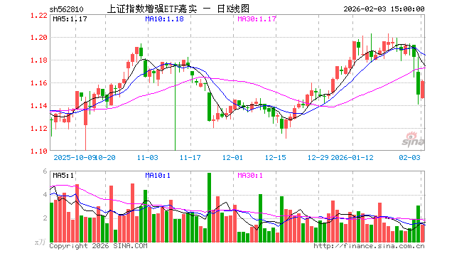 2月3日,上证指数增强ETF嘉实(562810)涨1.04%,成交额164.38万元。当日份额增加250.00万份,最新份额为4045.10万份,近20个交易日份额减少250.00万份。最新资产净值计算值为4700.81万元。