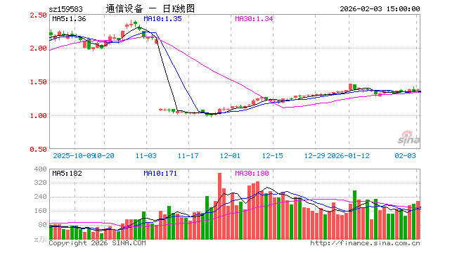 2月3日,通信设备ETF(159583)涨3.28%,成交额2.99亿元。当日份额减少1200.00万份,最新份额为10.37亿份,近20个交易日份额增加1.12亿份。最新资产净值计算值为14.36亿元。