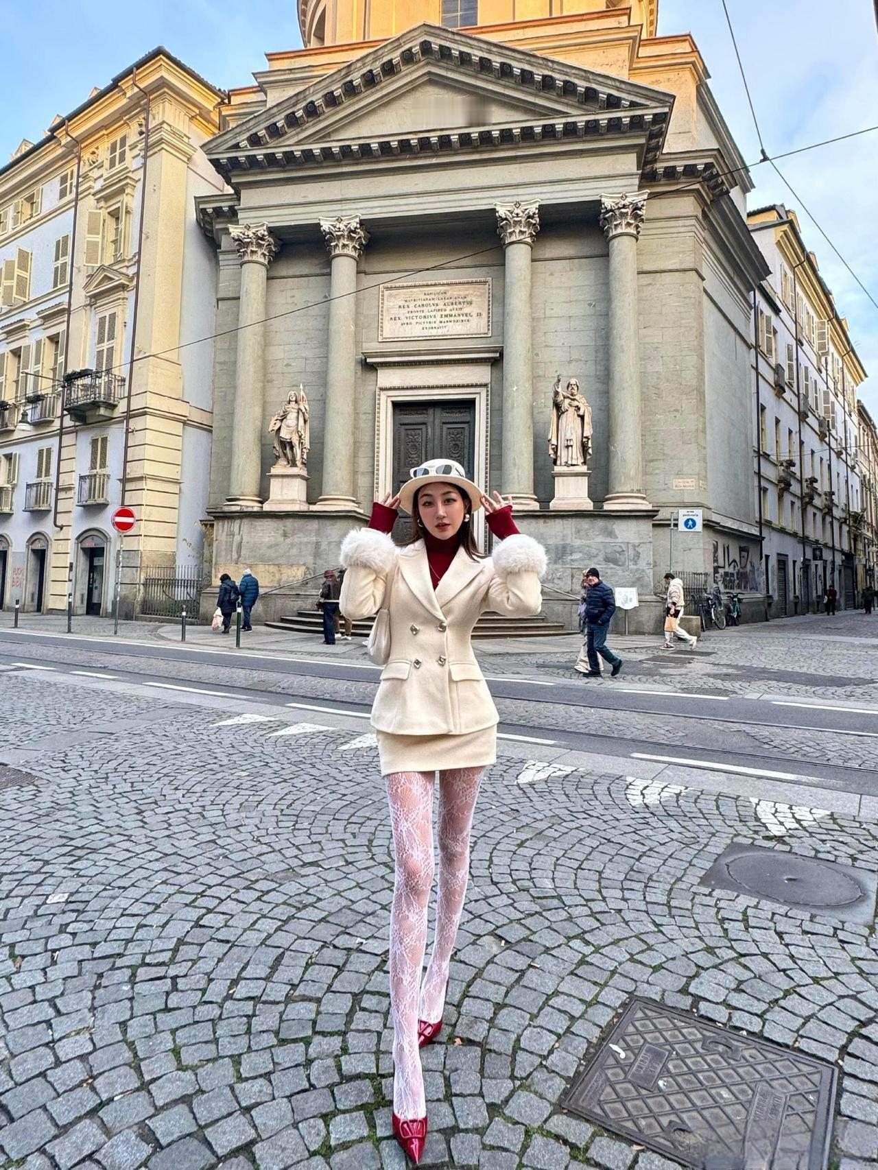 这套穿搭把“优雅贵气”平衡得刚好!米白色毛领西装套装自带高级感,内搭酒红色内搭和红色尖头鞋又添了精致亮点,搭配贝雷帽更显法式氛围!西装洋气穿搭 白色西装杀