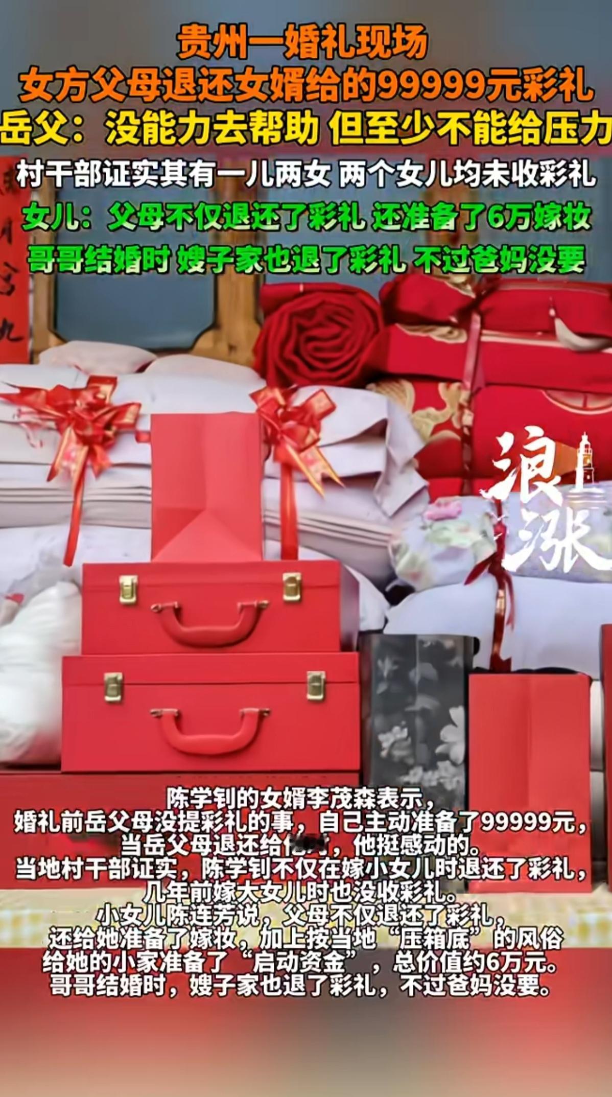 这才是彩礼和嫁妆的意义所在!婚前没要彩礼,男方主动给了99999元,婚礼当天,女方父母把彩礼全给了女儿女婿,还陪嫁6万,“作为父母,没有能力去帮助,至少不能给压力”,彩礼和嫁妆都是小家庭的启动资金 有爱的一家碰到了同样温暖的亲家,怕女儿女婿有压力,没要彩礼,男方主动给了,别人有的你也要有。彩礼和嫁妆都给了小家庭,两个女儿都是如此,父母真正是为孩子好 彩礼要的就是一个态度,这句话的含金量还在上升,父母怕女儿所遇非良人,彩礼也是一个试探,看对方肯不肯为女儿考虑付出。彩礼要的不多还磨蹭又讨价还价,也要想想他们是不是真心,会不会对女儿好,婚前就如此,婚后大概率会越来越差。遇到好亲家了,彩礼带回外加陪嫁,小家庭的保障有了,高高兴兴的送女儿出嫁,希望她们以后的生活越来越好