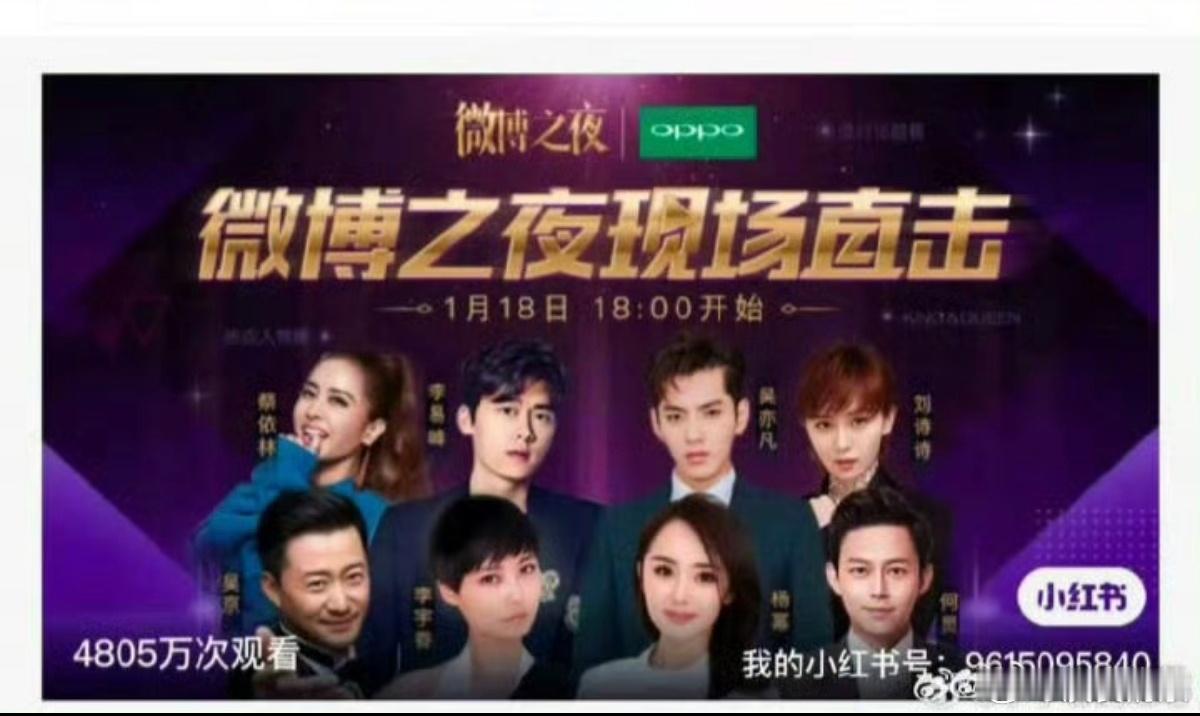 早期微博之夜2017年:前排:李宇春>杨幂>吴京>何炅后排:李易峰>吴亦凡>蔡依