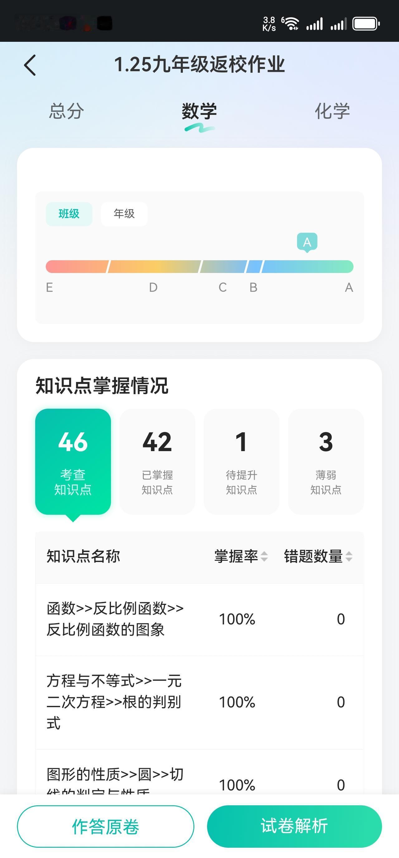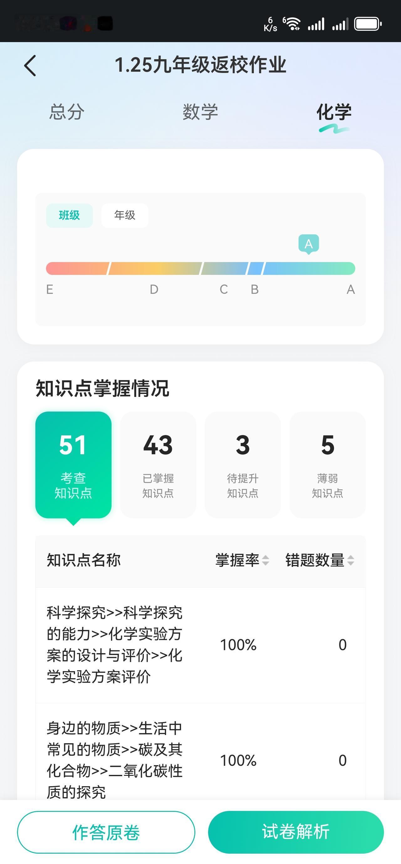 今天看了看智学网,发现智学网大变动,不公布分数了,全部用等级呈现。 今天早上想着看看孩子成绩出来没,打开一看没有新的成绩出来,就点开了最近一次成绩。 最近一次成绩我看过,数学和化学都被扣了几分。 这次点开,成绩没了,全部改为用 ABCDE 来评价了。 不过还好的是,下面还有一个条状图,能显示具体在班级,年级的大概情况。 这是初中毕业年级,成绩也已经属于秘密了,不能和家长直说。 我看四川有家长咨询成绩能不能告知,如何告知。教育部门回复,按规定,应该以等级呈现,不允许公布成绩,不允许排名。如家长有需求,可以单独联系老师获取。 分数不告知,试卷不让看,教育这是想怎么改革?