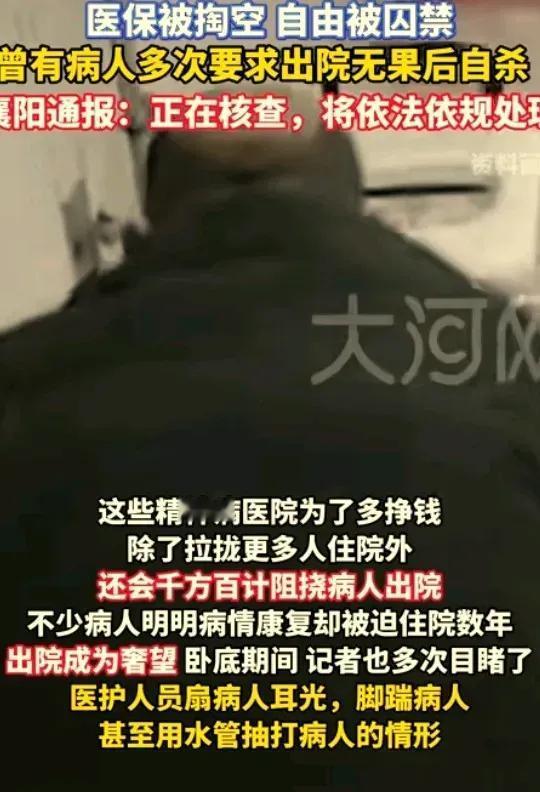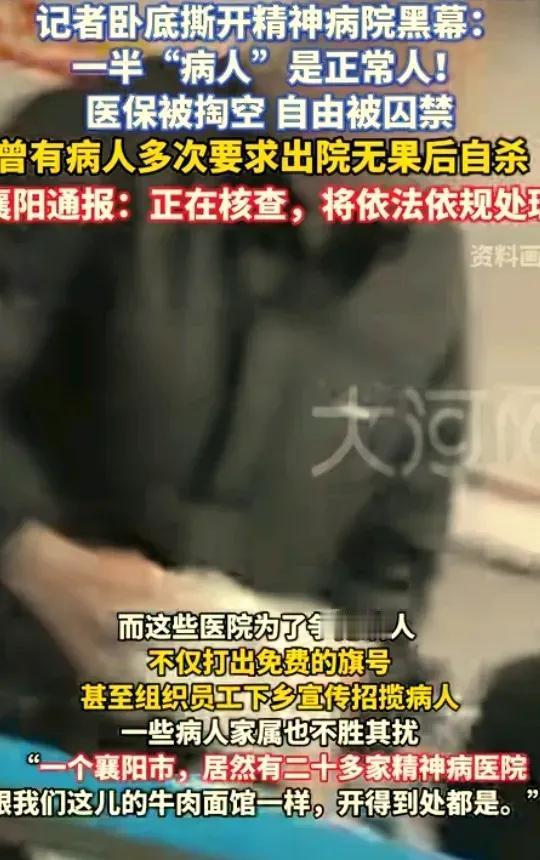 医保被套光,自由被囚禁! 记者卧底发现 多家精神病院的黑色生意,像是“孙二娘的黑店”,以医疗之名,行图财害人之实。把正常人当精神病,把养老当住院,把医保当成提款机…种种恶行,让人头皮发麻! 所谓“免费住院”,实际上是将活生生的人,“圈养”为医保摇钱树,伪造病历、虚构诊疗,将病房变为牢房,套取医保资金。 在这里,病人沦为廉价劳动力甚至被虐待,出院自由被无情剥夺。 在这里,救命钱成了“唐僧肉”,弱势群体反而成了敛财的工具! 在这里,正常人被当成精神病,本该救死扶伤的精神病院,却成了囚禁与伤害的牢笼。 当医疗失去底线,伤害的可不仅仅是患者的权益啊! 太离谱了!不想多说什么了…