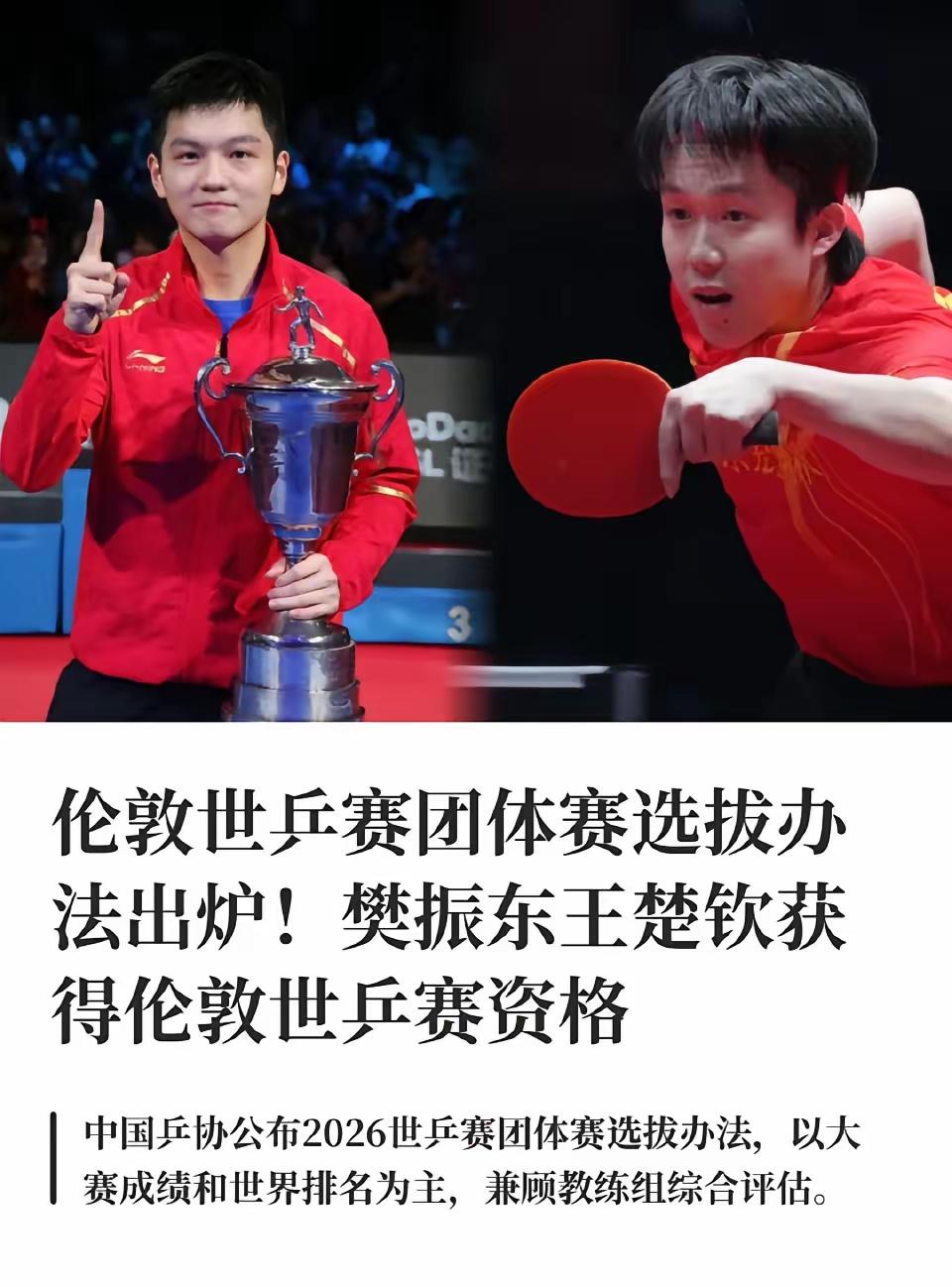 王励勤终于没有让人失望, 让操纵国乒的wtt滚一边吧。 中国乒联这次决定太明智了, 樊振东有资格参加世乒赛团体赛, 小胖的回归是众望所归,大势所趋, 国际赛事,只靠王楚钦很难保证金牌不旁落, 该说不说,在大赛上,樊振东更稳定, 更有胜算, 更有可能创造奇迹,反败为胜, 大头的状态偶尔会忽上忽下, 突然手感没有了, 就有点自暴自弃的感觉。 小胖更有韧性, 不到最后一刻, 决不放弃, 性格使然, 和技术无关, 丝毫没有贬低大头技术的意思, 王楚钦作为左手将, 能打到现在的成绩确实不容易, 但不可否认, 樊振东更胜一筹, 国家队有了樊振东, 王楚钦有可能很难超越,夺得男单, 但冠军不可能旁落。 还是很欣慰樊振东有参加国际大赛的资格, 王励勤没有让人失望。