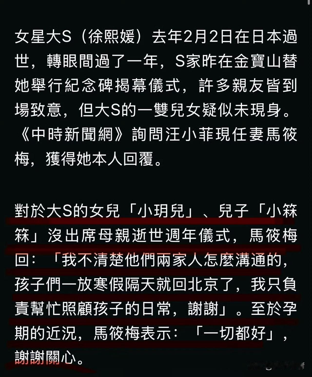 大S去世一周年,马筱梅又被骂了 大S去世一周年,仪式感搞得似乎比葬礼还足。具俊晔