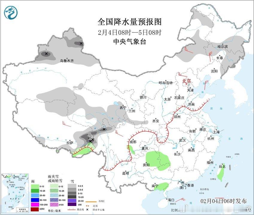 【雨雪】昨天到今晨,新疆北部降雪增多,塔城出现大雪,降雪量(化成水)9毫米,今晨8时积雪增厚到28厘米。今天到明晨,新疆北部、西藏东部、内蒙古东部、黑龙江南部、吉林等地降雪增多,新疆北疆东部和伊犁河谷、西藏东部等地部分地区有中到大雪,局地暴雪。