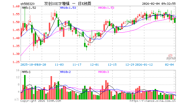 双创50ETF增强(588320)开盘涨0.00%,重仓股中际旭创跌3.34%,新易盛跌4.45%