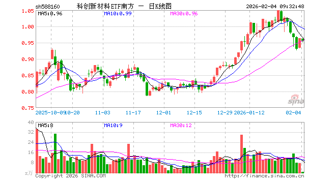 科创新材料ETF南方(588160)业绩比较基准为上证科创板新材料指数收益率,管理人为南方基金管理股份有限公司,基金经理为高兴坤、赵卓雄,成立(2022-09-30)以来回报为-3.58%,近一个月回报为9.64%。