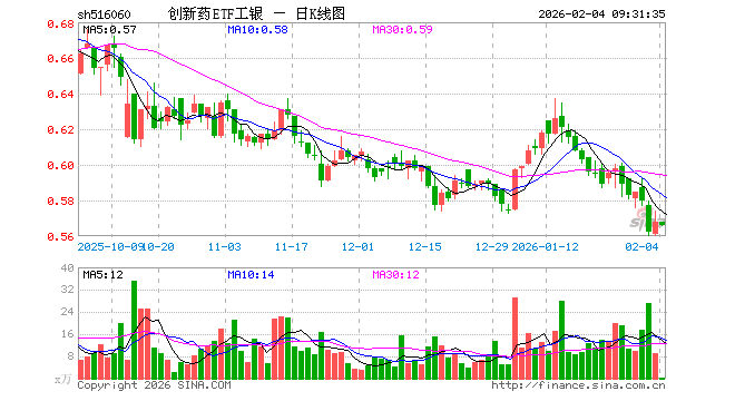 2月4日,创新药ETF工银(516060)开盘涨0.00%,报0.568元。创新药ETF工银(516060)重仓股方面,药明康德开盘跌0.63%,恒瑞医药跌0.30%,华东医药跌0.14%,复星医药涨0.04%,科伦药业跌0.13%,百济神州跌0.09%,长春高新涨0.01%,康龙化成跌0.68%,泰格医药跌0.02%,艾力斯涨0.67%。