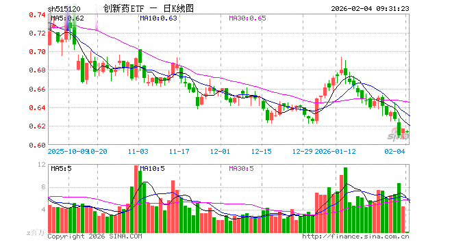 2月4日,创新药ETF(515120)开盘跌0.49%,报0.614元。创新药ETF(515120)重仓股方面,药明康德开盘跌0.63%,恒瑞医药跌0.30%,华东医药跌0.14%,复星医药涨0.04%,科伦药业跌0.13%,百济神州跌0.09%,长春高新涨0.01%,康龙化成跌0.68%,泰格医药跌0.02%,艾力斯涨0.67%。
