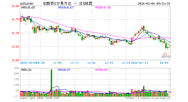 创新药ETF易方达(516080)业绩比较基准为中证创新药产业指数收益率,管理人为易方达基金管理有限公司,基金经理为伍臣东,成立(2021-02-03)以来回报为-35.03%,近一个月回报为-1.05%。