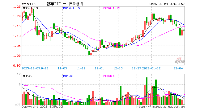 2月4日,智能汽车ETF(159889)开盘涨0.00%,报1.131元。智能汽车ETF(159889)重仓股方面,拓普集团开盘跌0.63%,豪威集团跌0.95%,科大讯飞跌1.20%,比亚迪跌0.43%,长安汽车跌0.36%,赛力斯涨0.12%,芯原股份跌1.00%,立讯精密跌0.86%,北京君正跌1.79%,德赛西威跌0.58%。