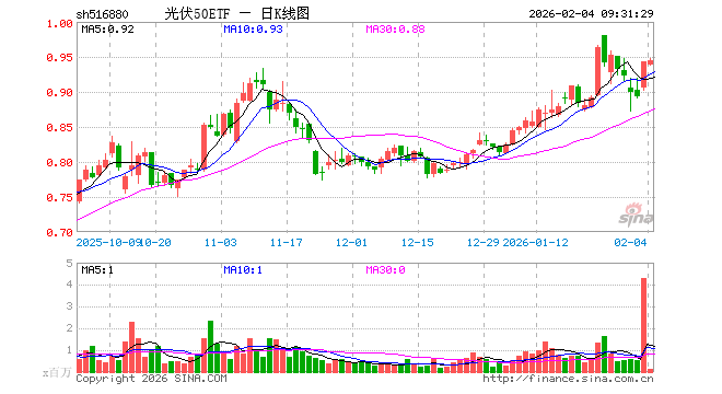 2月4日,光伏50ETF(516880)开盘跌0.42%,报0.939元。光伏50ETF(516880)重仓股方面,特变电工开盘跌0.34%,隆基绿能跌0.92%,阳光电源涨0.08%,TCL科技跌0.63%,通威股份涨0.11%,迈为股份涨0.60%,德业股份跌0.45%,正泰电器跌1.00%,TCL中环涨0.10%,捷佳伟创涨1.45%。