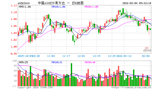 2月4日,中国A50ETF易方达(563000)开盘跌0.09%,报1.052元。中国A50ETF易方达(563000)重仓股方面,宁德时代开盘涨0.88%,紫金矿业涨1.78%,贵州茅台涨0.68%,工业富联跌1.90%,中际旭创跌3.34%,比亚迪跌0.43%,寒武纪跌2.48%,洛阳钼业涨3.98%,招商银行涨0.00%,海光信息跌1.30%。