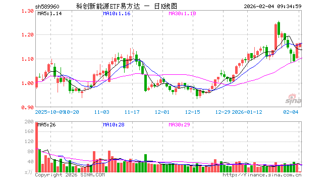 科创新能源ETF易方达(589960)业绩比较基准为上证科创板新能源指数收益率,管理人为易方达基金管理有限公司,基金经理为李博扬,成立(2025-09-10)以来回报为15.79%,近一个月回报为15.21%。