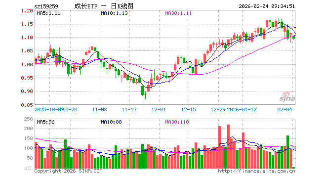 2月4日,成长ETF易方达(159259)开盘跌0.81%,报1.104元。成长ETF易方达(159259)重仓股方面,中际旭创开盘跌3.34%,生益科技跌2.03%,工业富联跌1.90%,新易盛跌4.45%,深南电路跌1.45%,巨人网络跌1.83%,先导智能跌1.12%,金风科技跌1.29%,长芯博创跌1.25%,生益电子跌1.94%。