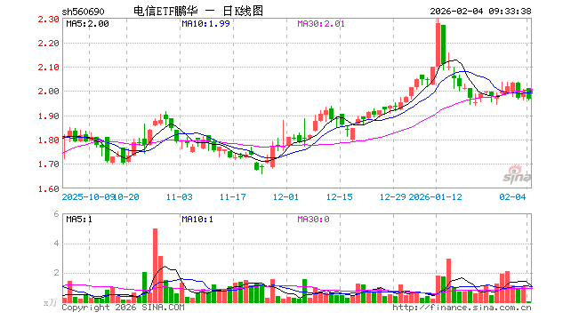 2月4日,电信ETF鹏华(560690)开盘涨0.45%,报2.010元。电信ETF鹏华(560690)重仓股方面,中国移动开盘跌0.07%,中国联通跌0.21%,中国电信跌0.18%,中国卫通跌0.30%,中际旭创跌3.34%,银之杰跌0.75%,新易盛跌4.45%,中兴通讯跌0.70%,天孚通信涨0.74%,中天科技跌0.13%。