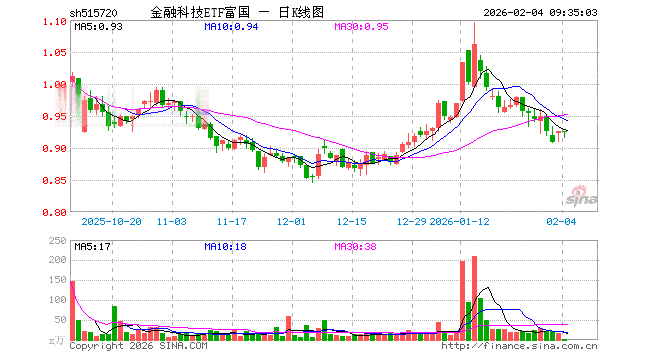 金融科技ETF富国(515720)业绩比较基准为中证金融科技主题指数收益率,管理人为富国基金管理有限公司,基金经理为殷钦怡,成立(2025-09-22)以来回报为-7.47%,近一个月回报为0.05%。
