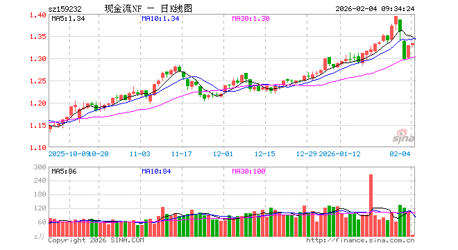 2月4日,自由现金流ETF南方(159232)开盘涨0.00%,报1.329元。自由现金流ETF南方(159232)重仓股方面,中国海油开盘涨1.98%,上汽集团跌0.35%,格力电器跌0.26%,中远海控涨0.14%,牧原股份涨0.15%,中国铝业涨1.75%,TCL科技跌0.63%,宝钢股份跌0.28%,长城汽车跌0.10%,正泰电器跌1.00%。
