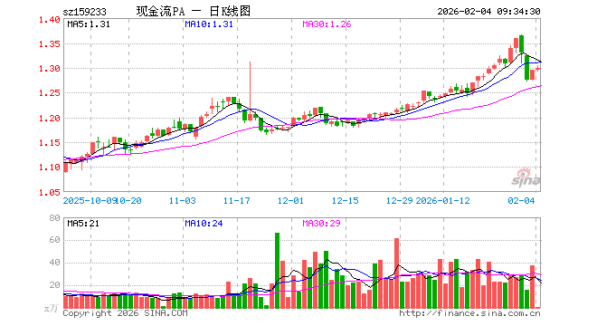 自由现金流ETF基金(159233)业绩比较基准为中证全指自由现金流指数收益率,管理人为平安基金管理有限公司,基金经理为钱晶、白圭尧,成立(2025-05-21)以来回报为29.48%,近一个月回报为5.84%。