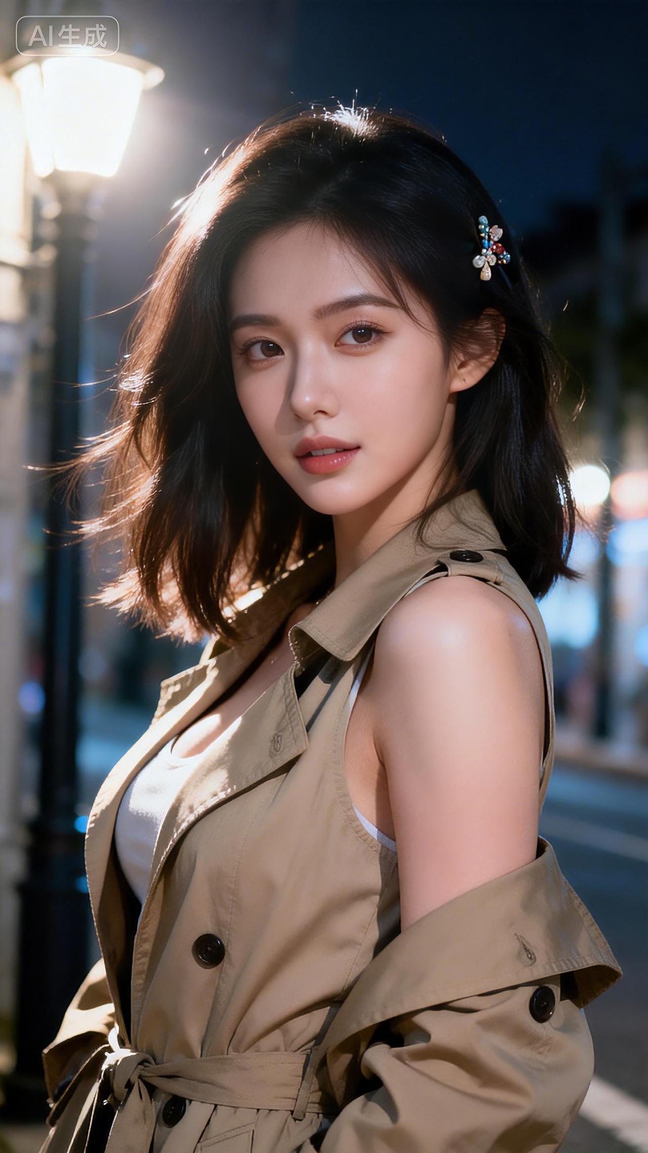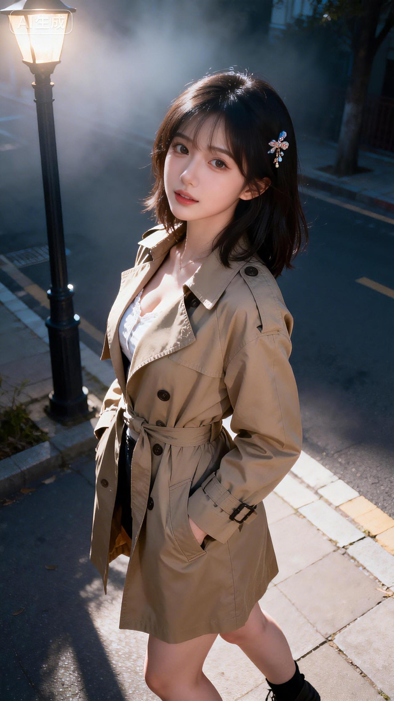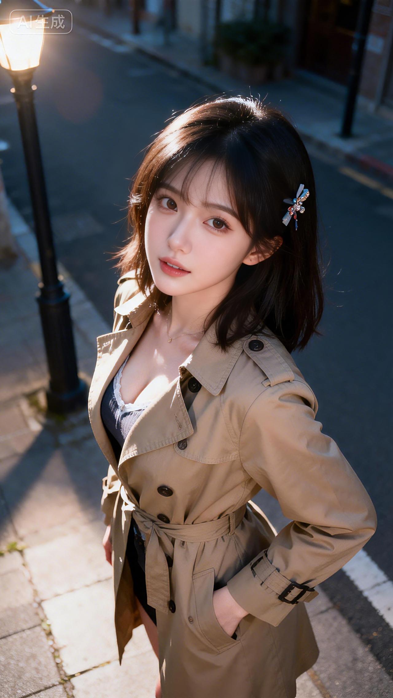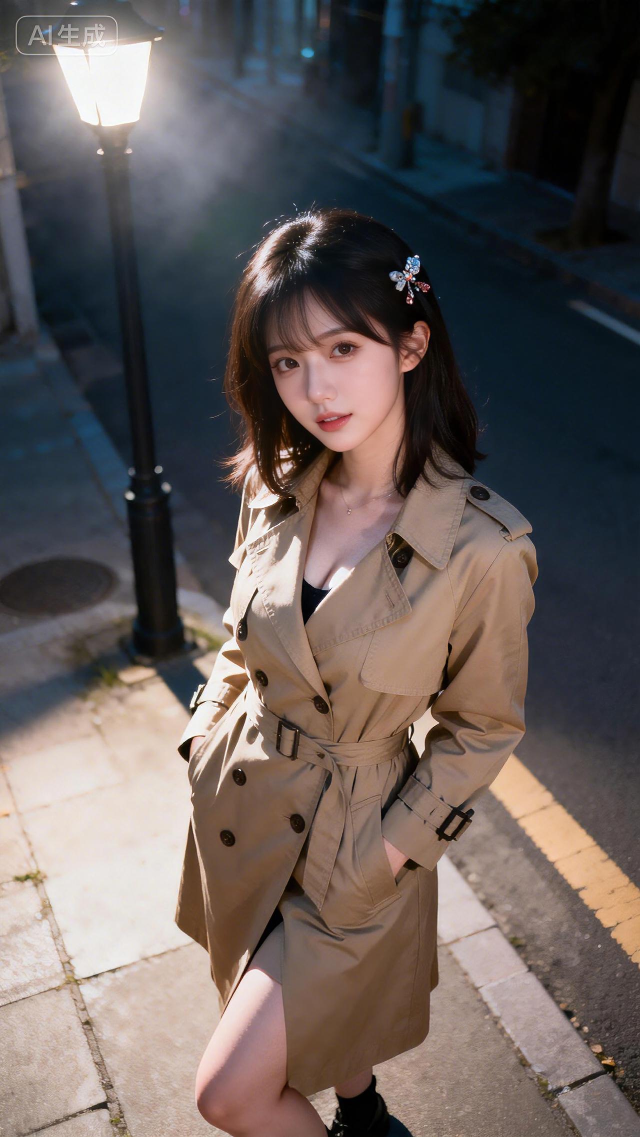 风衣微卷步轻盈,灯火阑珊夜色凝。豆包 壁纸